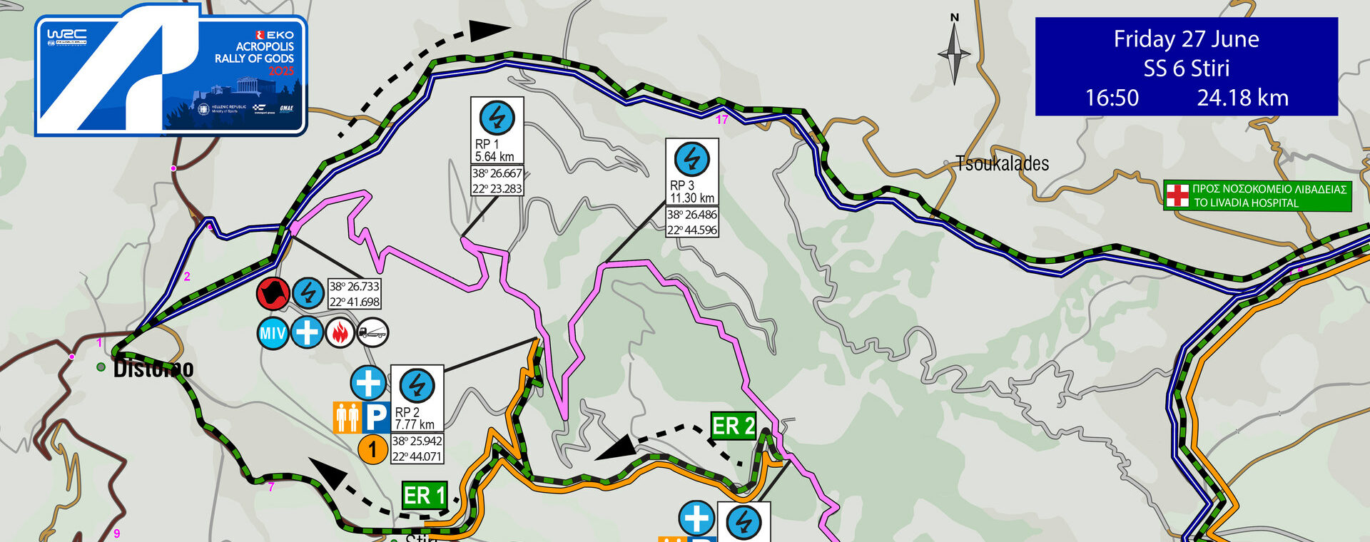 INFO: Επιλέξτε το σημείο από όπου θα παρακολουθήσετε τον αγώνα τουλάχιστον 30 λεπτά πριν από την εκκίνηση της ειδικής διαδρομής. Μετά από αυτό το χρονικό όριο, απαγορεύεται οποιαδήποτε κίνηση στον δρόμο, συμπεριλαμβανομένων της αφετηρίας και του τερματισμού.