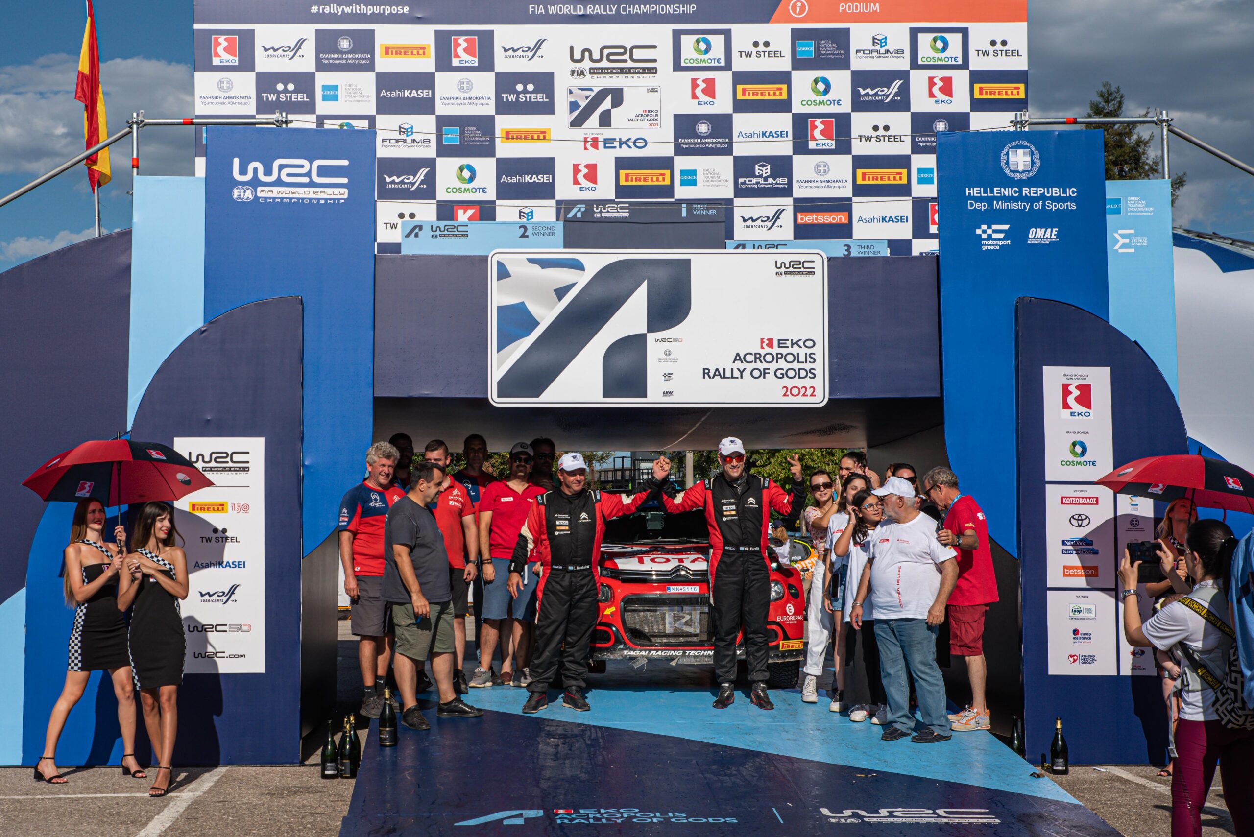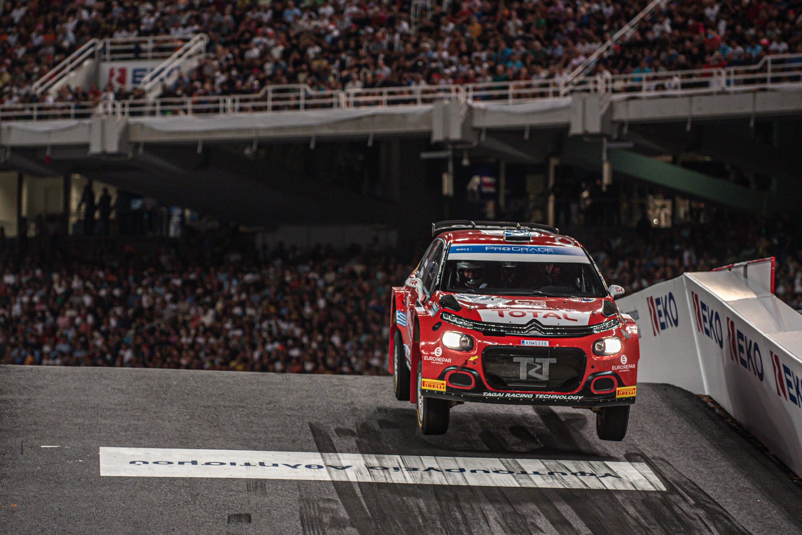 Το Ελληνικό πλήρωμα της Citroen Karellis, Καρέλλης – Μαχαίρας, έφτασε στον τερματισμό έχοντας σημειώσει πολύ καλούς χρόνους στις απαιτητικές ειδικές του φετινού Rally Acropolis και πάνω από όλα κερδίζοντας τον θαυμασμό και την αγάπη των θεατών για το θέαμα που προσέφεραν.