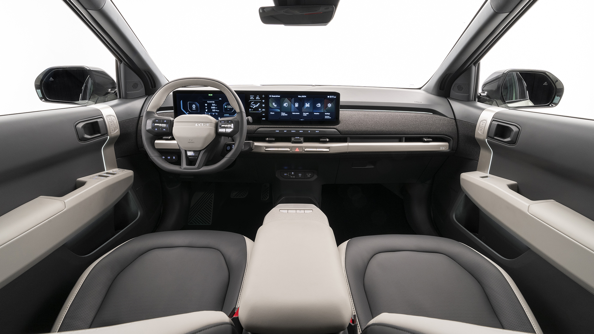 Κομψή λεπτομέρεια, η μετακόμιση του λογότυπου της KIA στο επάνω δεξί μέρος του κέντρου του τιμονιού, φέροντας στο νου φίρμες επώνυμων ρούχων… Βέβαια, οι σχεδιαστές του EV3 δεν περιορίστηκαν στο να δημιουργήσουν ένα κομψό και ευχάριστο εσωτερικό. Αντίθετα, ενσωμάτωσαν έξυπνες ιδέες που κάνουν την καθημερινότητα πολύ πιο άνετη και ξέγνοιαστη.
