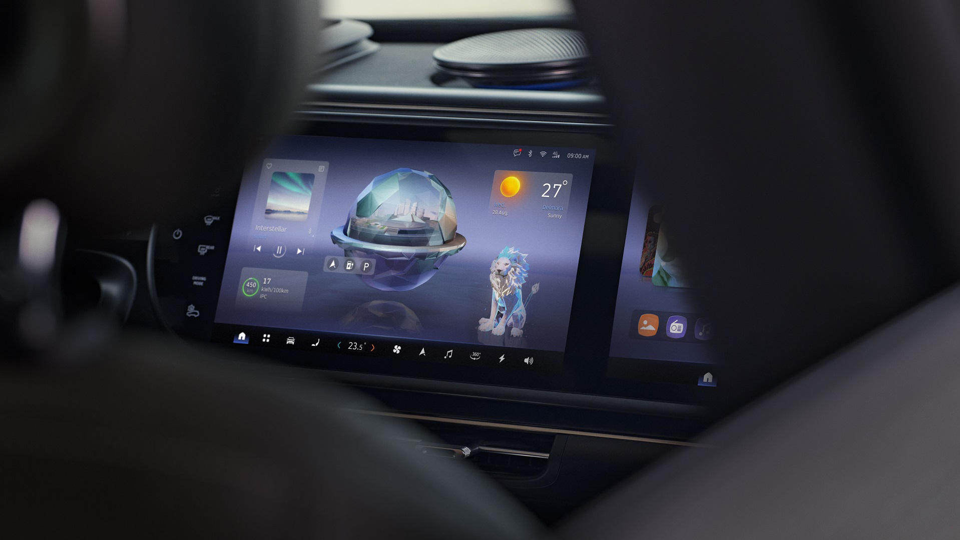 Ο φωνητικός βοηθός με υποστήριξη τεχνητής νοημοσύνης, σε συνδυασμό με το νέο avatar Snow Lion, παρέχει καθοδήγηση και δυνατότητα χειρισμού πολλών λειτουργιών του οχήματος, ανέπαφα. Επιπλέον, το λειτουργικό σύστημα smart OS 2.0 προσφέρει βελτιστοποιημένη πλοήγηση για ηλεκτρικά οχήματα και ένα νέο video center, που επιτρέπει τo streaming μέσα στο όχημα. Χάρη στην τεχνολογία 3D της Unreal, τα γραφικά της οθόνης είναι εξαιρετικά ακριβή και λεπτομερή, επιτρέποντας εύκολη πλοήγηση σε όλες τις ψηφιακές διεπαφές.