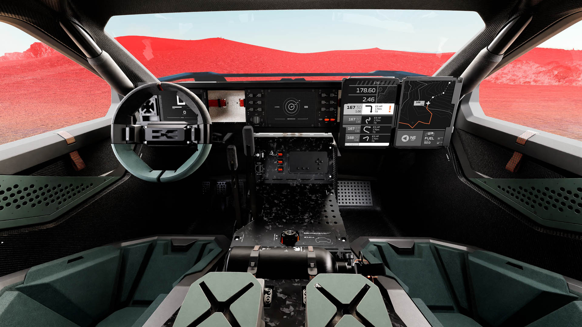 Όλα τα πάνελ του αμαξώματος είναι κατασκευασμένα από ανθρακονήματα, ενώ στο εμπρός μέρος εντύπωση προκαλεί το μονό φως ομίχλης. Το εσωτερικό είναι εντελώς απογυμνωμένο για τον περιορισμό του βάρους. Το σασί είναι σωληνωτό, η ανάρτηση έχει αναβαθμιστεί με διπλά ψαλίδια ρυθμισμένα έτσι ώστε να αντιμετωπίσουν τις δύσκολες εκτός δρόμου συνθήκες. Τα ελαστικά του οχήματος είναι επίσης μεγαλύτερα για τους ίδιους λόγους.