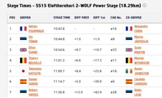 Ο Sebastien Ogier είδε τις ελπίδες του για τους βαθμούς της πρώτης θέσης στην Wolf Power Stage να εξανεμίζονται μόλις 1,6 χλμ. από την εκκίνηση της ειδικής, όπου τούμπαρε το Toyota GR Yaris. Εξέλιξη που φυσικά του κόστισε και την δεύτερη θέση του αγώνα. Ο Γάλλος 8άκις Παγκόσμιος Πρωταθλητής κατάφερε να επαναφέρει το αυτοκίνητο στο δρόμο και να τερματίσει τελικά στην 16η γενικής, εξασφαλίζοντας έτσι πως θα πάρει τους βαθμούς του Σαββάτου.