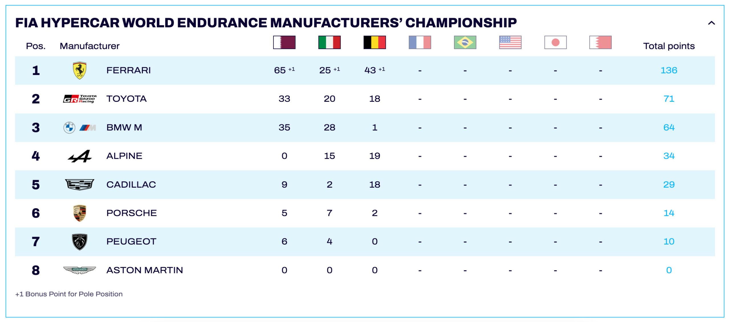 Το Παγκόσμιο Πρωτάθλημα Αντοχής ταξίδεψε στη θρυλική πίστα του Spa-Francorchamps για έναν 6ωρο αγώνα, ο οποίος αποτέλεσε τον 3ο γύρο της φετινής σεζόν. Εκεί, η Ferrari συνέχισε την κυριαρχία της, καθώς είναι η μόνη ομάδα που έχει καταφέρει να γευτεί τη χαρά της νίκης φέτος.
