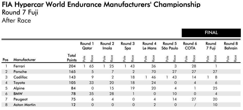 WEC Αποτελέσματα 6 Ώρες Fuji 2025