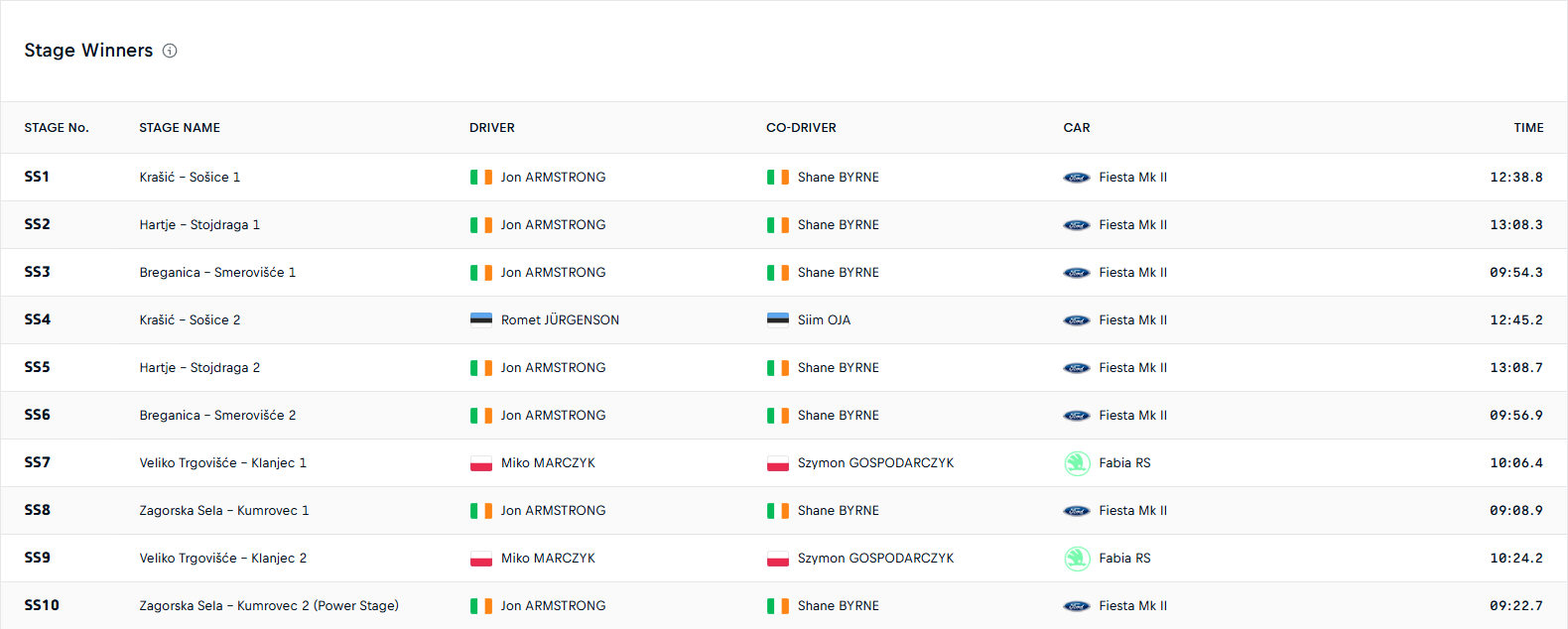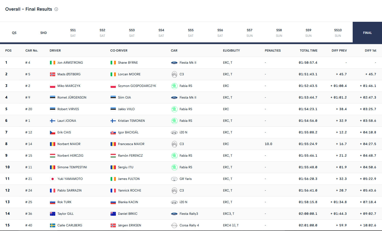 Η βροχή της Κυριακής δεν κατάφερε να σταματήσει την πορεία του Armstrong, καθώς ο Ιρλανδός οδήγησε χωρίς λάθη στις τέσσερις τελευταίες ειδικές διαδρομές και κέρδισε την Power Stage, κατακτώντας μια εντυπωσιακή νίκη με 45,7 δευτερόλεπτα διαφορά από τον Mads Οstberg. Ο οδηγός της Motorsport Ireland Rally Academy ολοκλήρωσε τη σεζόν στη 2η θέση της βαθμολογίας.