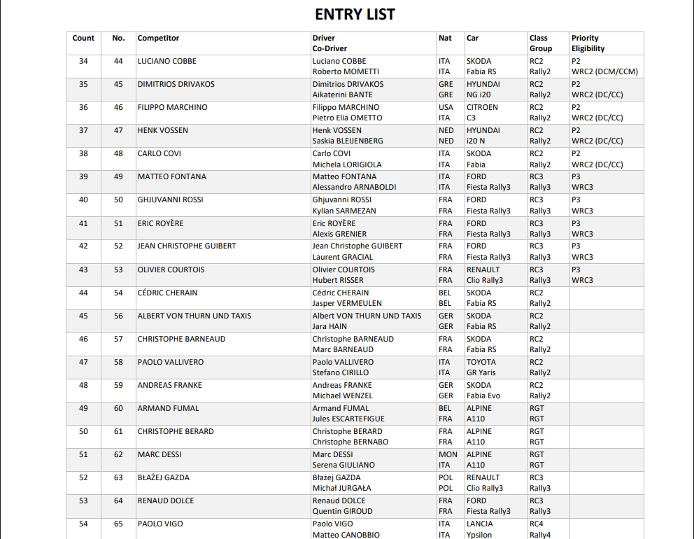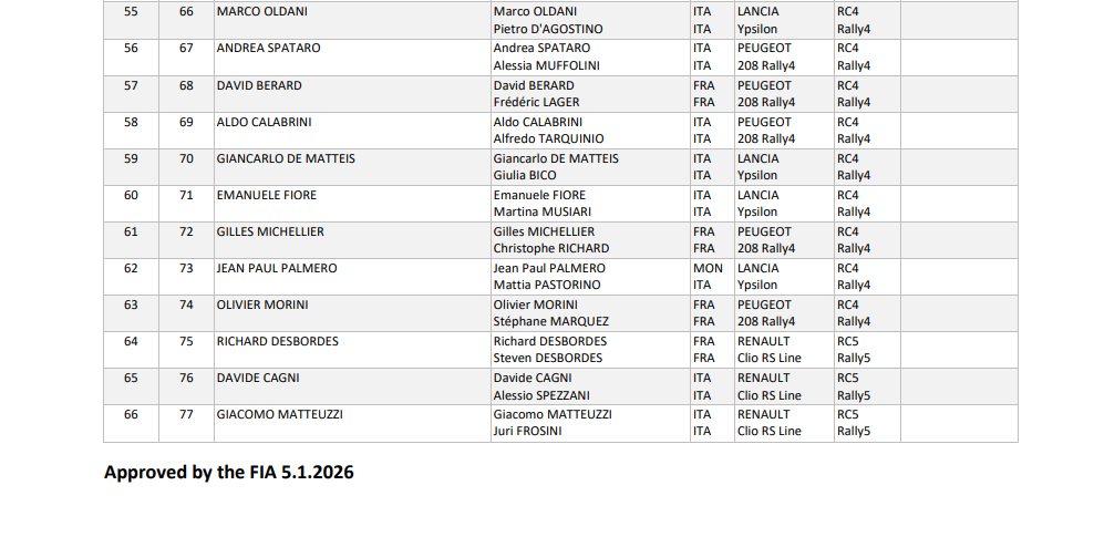 Δείτε παρακάτω τις συμμετοχές του Ράλλυ Μόντε Κάρλο 2026: