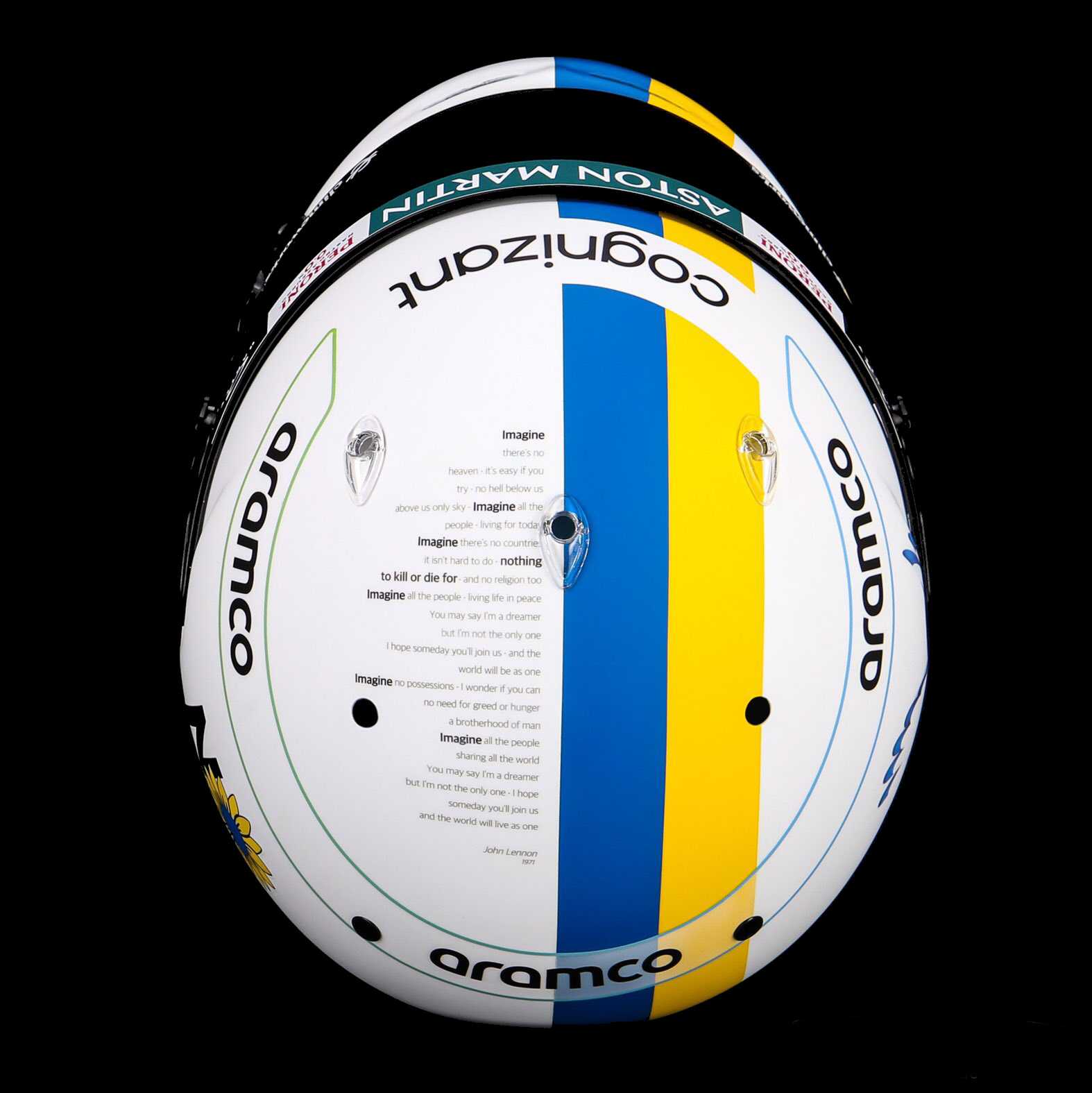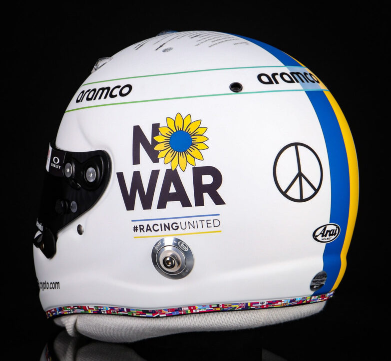 Στο τεστ χειμερινών δοκιμών εξέλιξης στο Μπαχρέιν, ο Vettel έφερε κράνος με τα χρώματα της σημαίας της Ουκρανίας, με το μήνυμα no war, τους στίχους του τραγουδιού «Imagine» του John Lennon, το σύμβολο της ειρήνης και στο κάτω μέρος όλες τις σημαίες του κόσμου. Ωστόσο μεταξύ τους έχει συμπεριληφθεί και αυτή του κατεχόμενου ψευδοκράτους της Κύπρου.