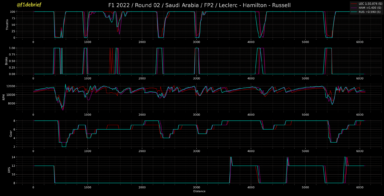Οι δύο οδηγοί της Mercedes δε βρίσκονταν πολύ πίσω από τους τέσσερις προαναφερθέντες, με τον Lewis Hamilton 0,439 δλ. πίσω από τον Leclerc και τον George Russell σχεδόν 0,6 δλ. Ωστόσο, τα προβλήματα ταλαντώσεων ήταν και πάλι έντονα στα ασημί μονοθέσια. Ο Hamilton, που ζήτησε αλλαγή καθίσματος, προτιμώντας ένα υψηλότερο, χρησιμοποιούσε και πάλι την πίσω αεροτομή με μεγάλο κόψιμο στο πίσω πτερύγιο, αυτή τη φορά χωρίς gurney flap, ρυθμισμένο να παράγει λιγότερη αρνητική άντωση.