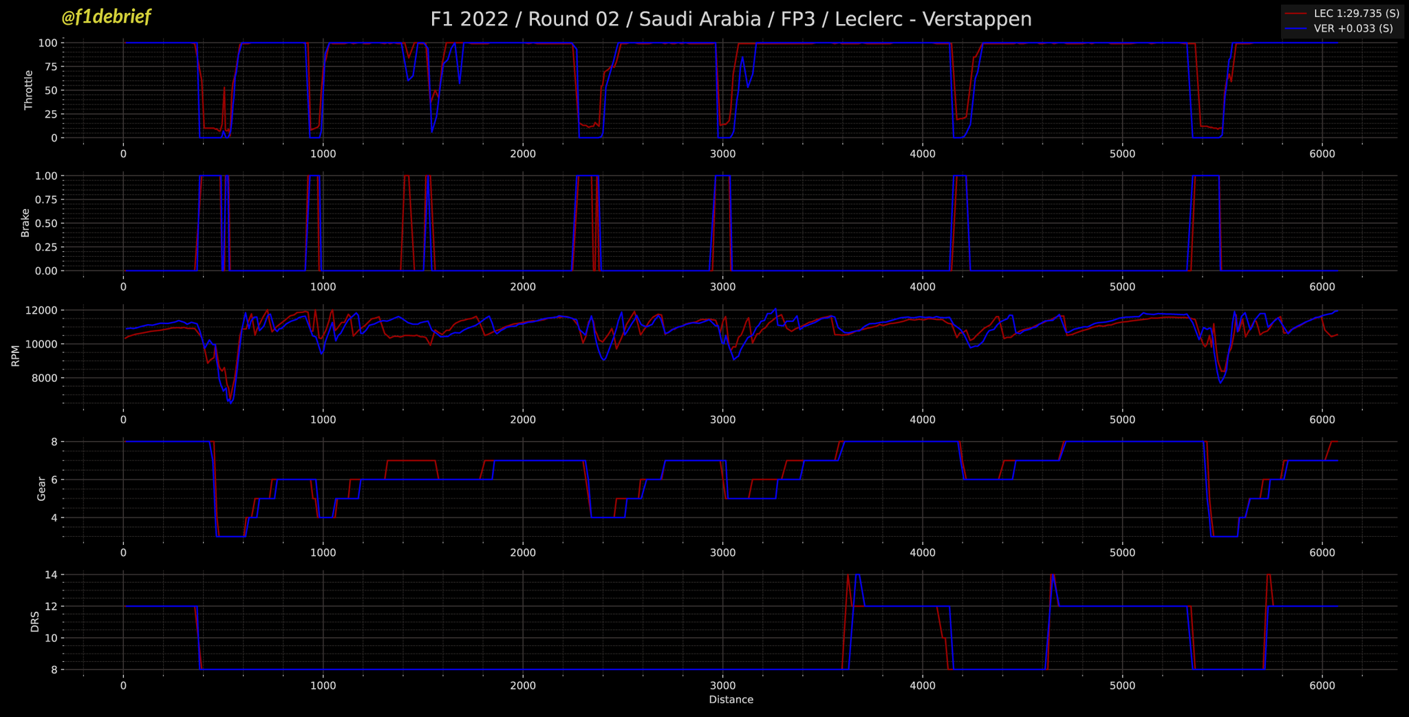 Από τις επικεφαλίδες, θα πίστευε κανείς ότι ο Charles Leclerc, με τη Ferrari, έχει κυριαρχήσει τις ελεύθερες δοκιμές στη Jeddah. Ωστόσο και πάλι η Red Bull ήταν αυτή που έδειχνε πιο εντυπωσιακή στην πίστα. Ο Leclerc κατάφερε να σημειώσει τον ταχύτερο χρόνο στις τελευταίες στιγμές της διαδικασίας. Φαίνεται ότι όπως συνέβη και στο Μπαχρέιν, η Ferrari έχει επιλέξει, μέχρι στιγμής, ρυθμίσεις παραγωγής υψηλότερων τιμών αρνητικής άντωσης, γεγονός που την κάνει ταχύτερη στο πρώτο τμήμα της πίστας, αλλά χάνει στα άλλα δύο, όπου μετράει περισσότερο η τελική ταχύτητα.
