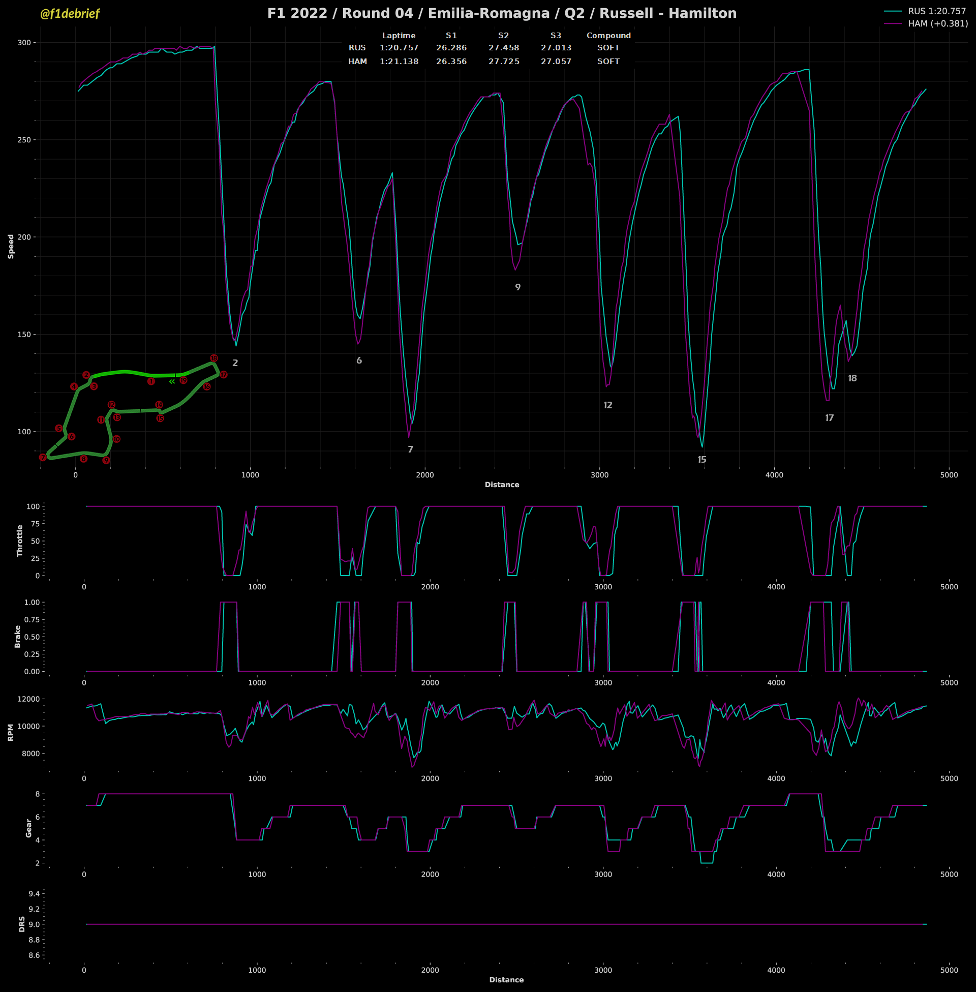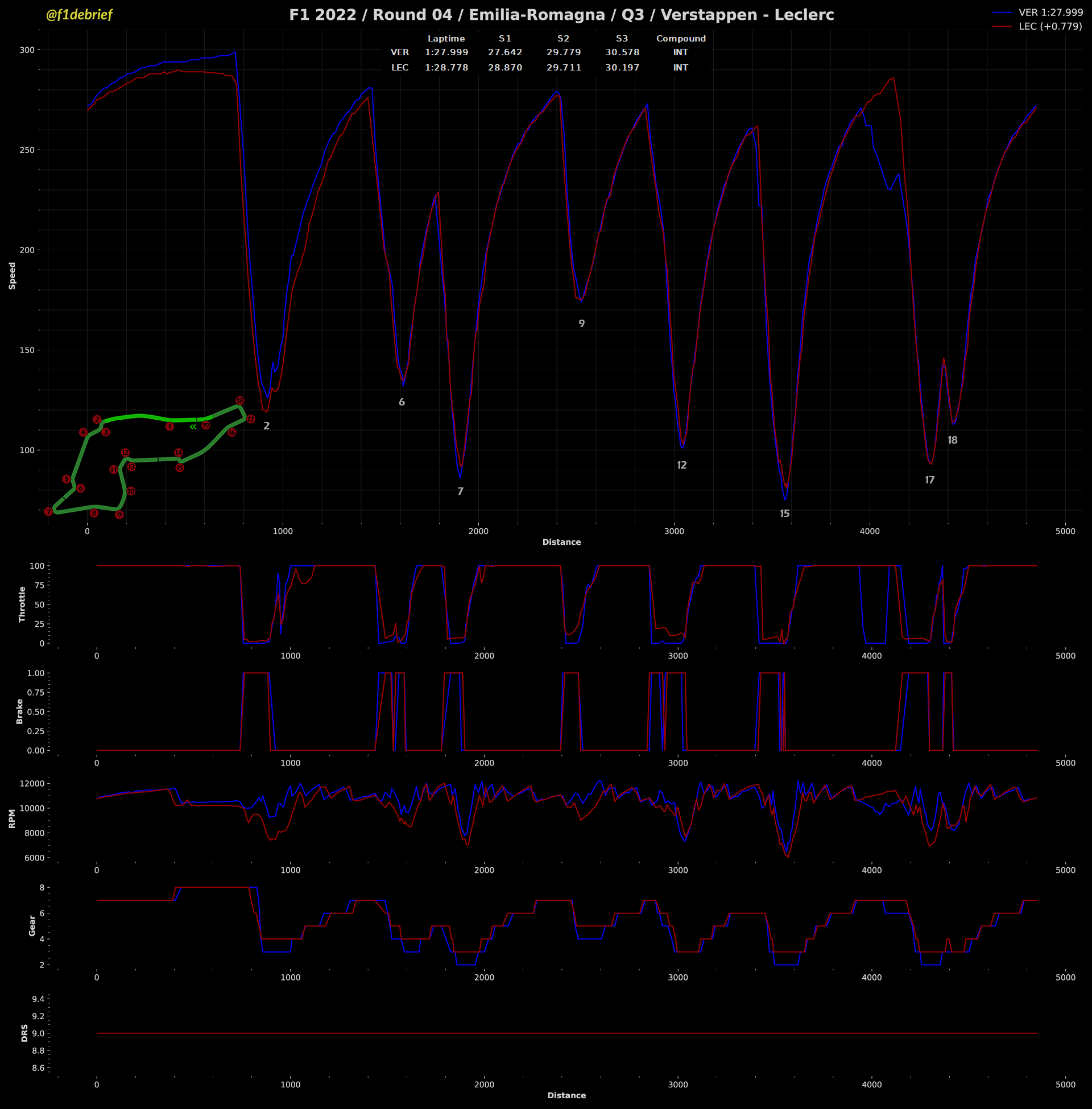 Ακόμα και αν δεν υπήρχε διακοπή στο τελευταίο λεπτό λόγω της επαφής του Norris με τις μπαριέρες, δύσκολα θα βλέπαμε βελτίωση χρόνων, διότι πέραν του πιο βρεγμένου ασφαλτοτάπητα, ήταν δύσκολο για τους οδηγούς να αναπτύξουν τις κατάλληλες θερμοκρασίες λειτουργίας στα ελαστικά από τον πρώτο γύρο. Oι Ferrari έδειχναν ταχύτερες στις βρόχινες συνθήκες, έχοντας τη δυνατότητα να αναπτύξουν ταχύτερα θερμοκρασία στα ελαστικά. Ωστόσο, ο Verstappen φρόντισε να είναι ταχύτατος από την πρώτη προσπάθεια, σε αντίθεση με τον πιο συντηρητικό Leclerc και μάλιστα, ο Ολλανδός βγήκε εκτός πίστας στο ξεκίνημα του επόμενου γύρου. Ο Μονεγάσκος είχε κάνει στην 1η προσπάθεια ένα γρήγορο χρόνο και στη συνέχεια εγκατέλειψε τη 2η προσπάθειά του, για να έχει καλύτερα ελαστικά για τους επόμενους γύρους, οι οποίοι στην ουσία δεν ήρθαν ποτέ, λόγω των δύο κόκκινων σημαιών.