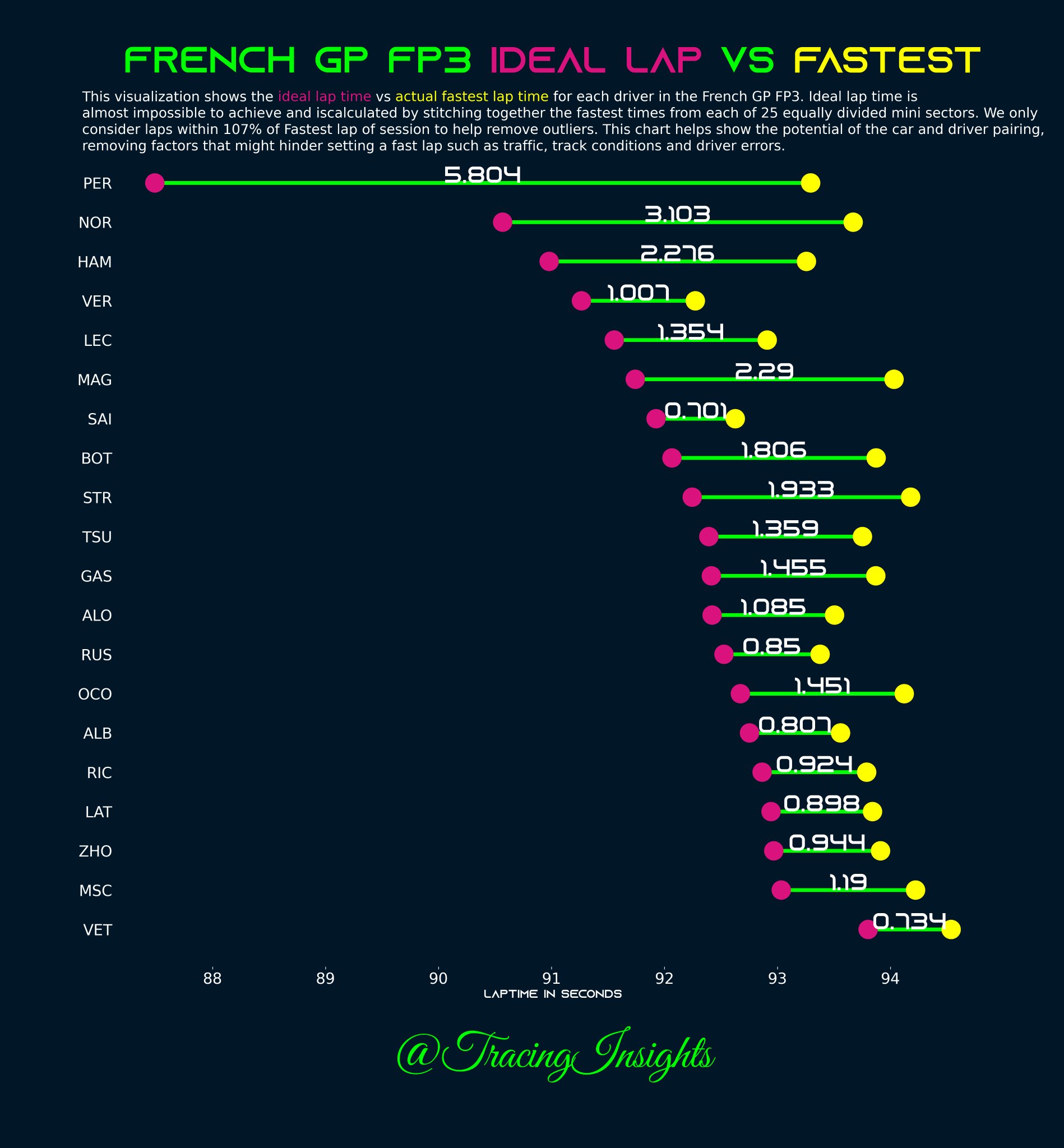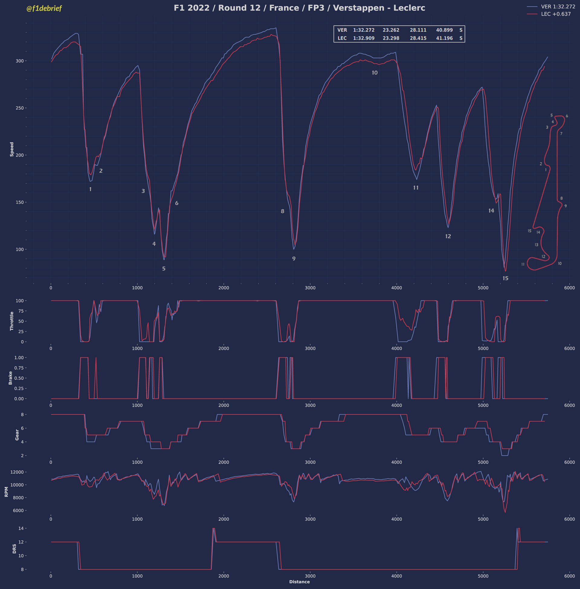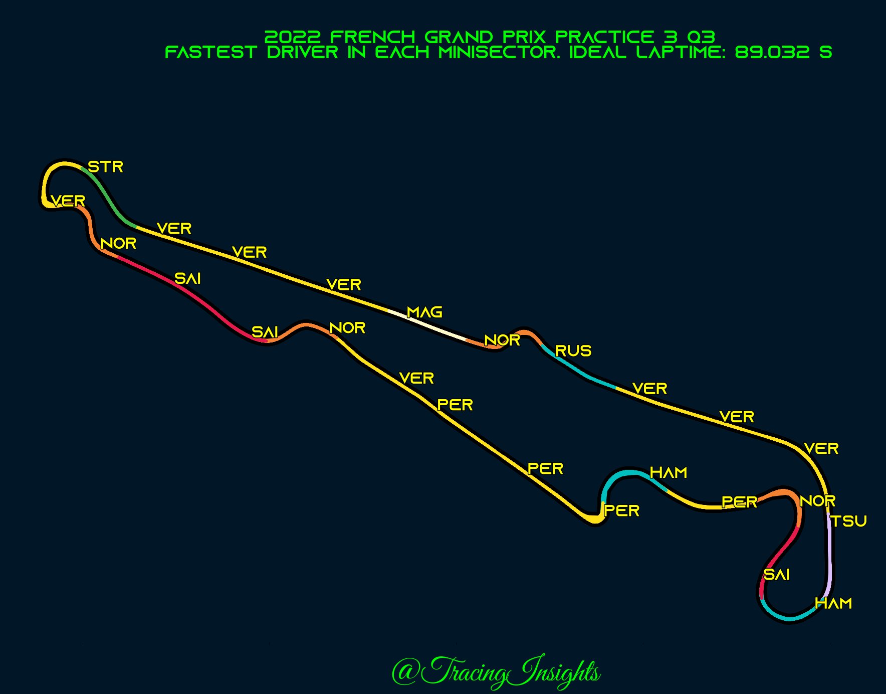 Ο Max Verstappen σημείωσε τον ταχύτερο χρόνο του FP3 για το GP Γαλλίας, με μεγάλη διαφορά (0,35 δλ.) από τον 2ο, Carlos Sainz. Όπως έχουμε δει στους τελευταίους αγώνες, είναι πολύ πιθανό η Ferrari να έχει επιλέξει συντηρητικές ρυθμίσεις μονάδας ισχύος για τη συγκεκριμένη διαδικασία, προσπαθώντας να προστατεύσει όσο μπορεί τους εύθραυστους κινητήρες της.