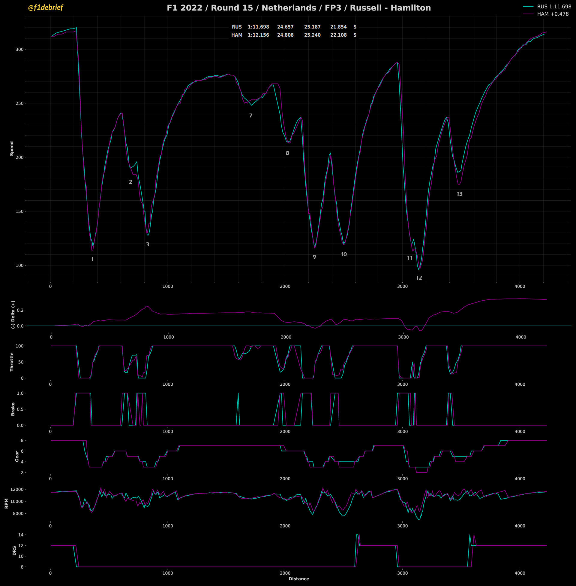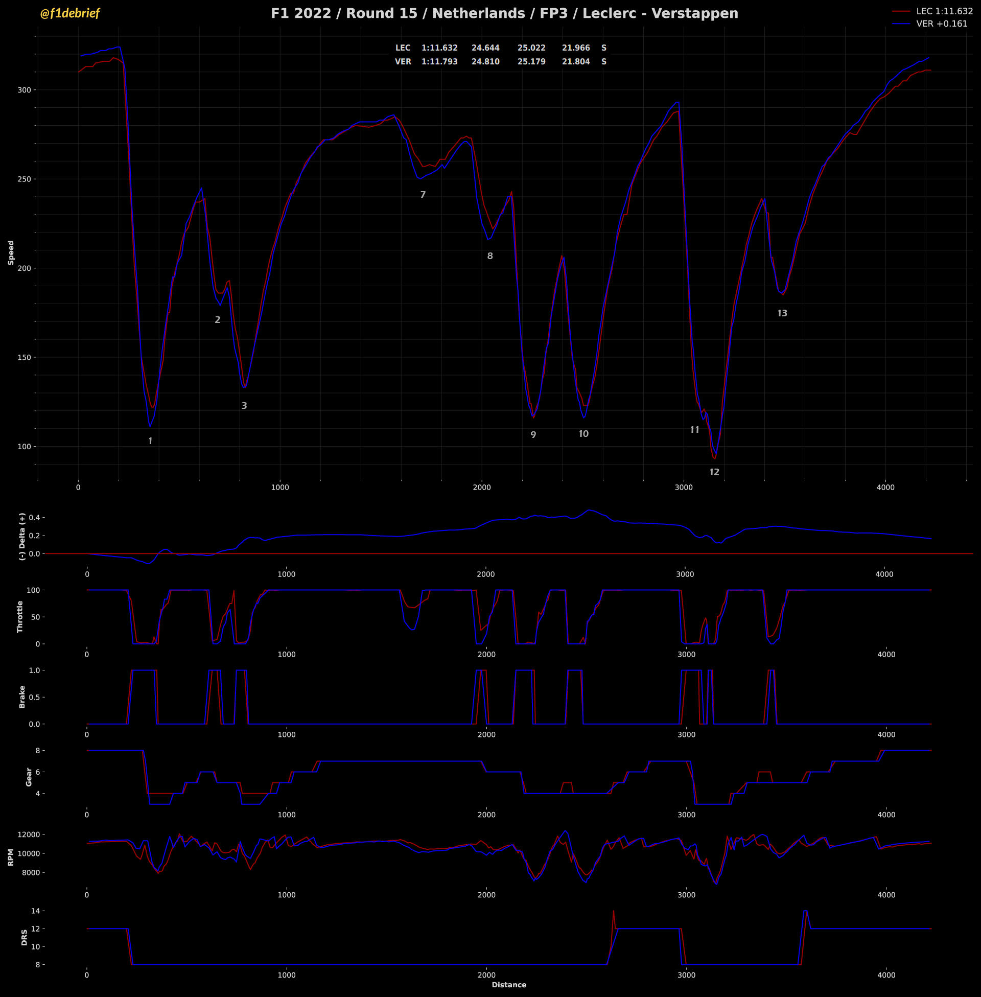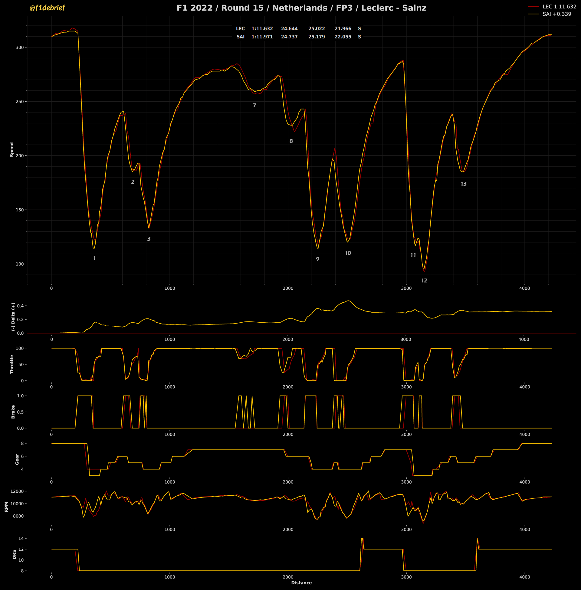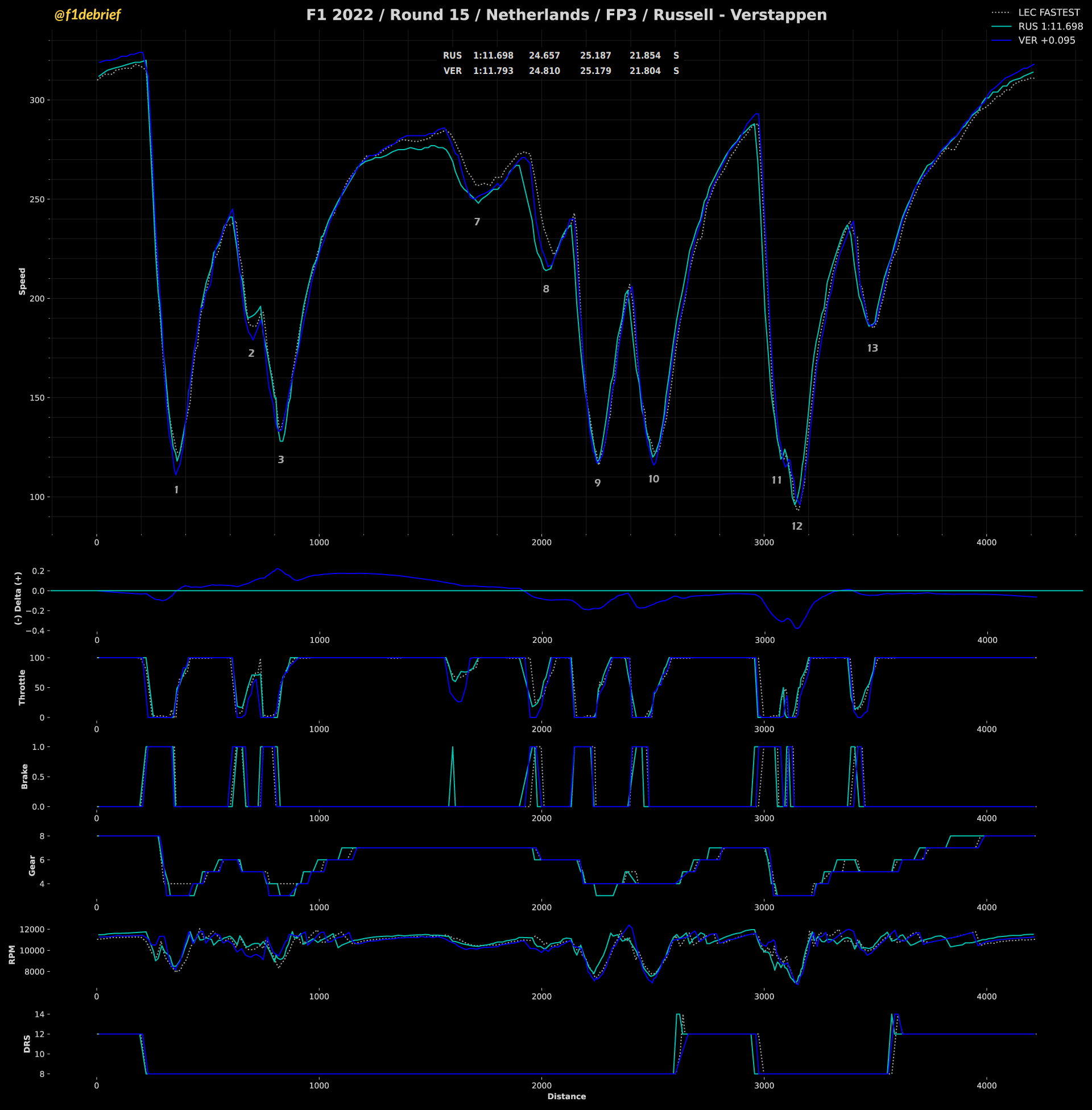 Ο Charles Leclerc, ο ταχύτερος οδηγός του FP2, ήταν επικεφαλής και στην τελική διαδικασία ελεύθερων δοκιμών του GP Ολλανδίας με τη Ferrari, ωστόσο η διαφορά του από τη Mercedes του 2ου, George Russell ήταν μόλις 66 χλστ. του δλ. Πολύ καλύτερη εικόνα από εχθές επέδειξε ο Max Verstappen με τη Red Bull, ο οποίος κυριάρχησε στο πρώτο μισό του FP3, αλλά βρέθηκε 161 χλστ. του δλ. πίσω από τον Μονεγάσκο.