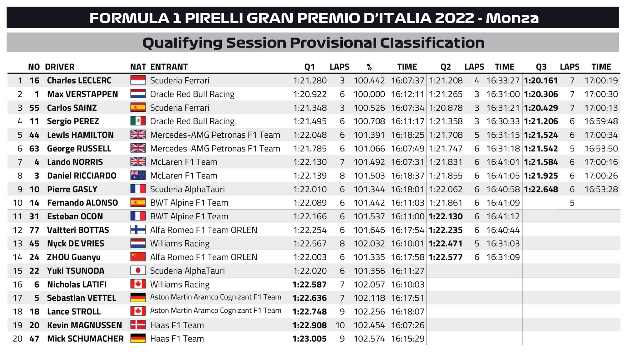 H Ferrari κατέκτησε την pole position εμπρός από τους tifosi, με τον Charles Leclerc να σημειώνει τον ταχύτερο χρόνο της διαδικασίας των κατατακτήριων δοκιμών.