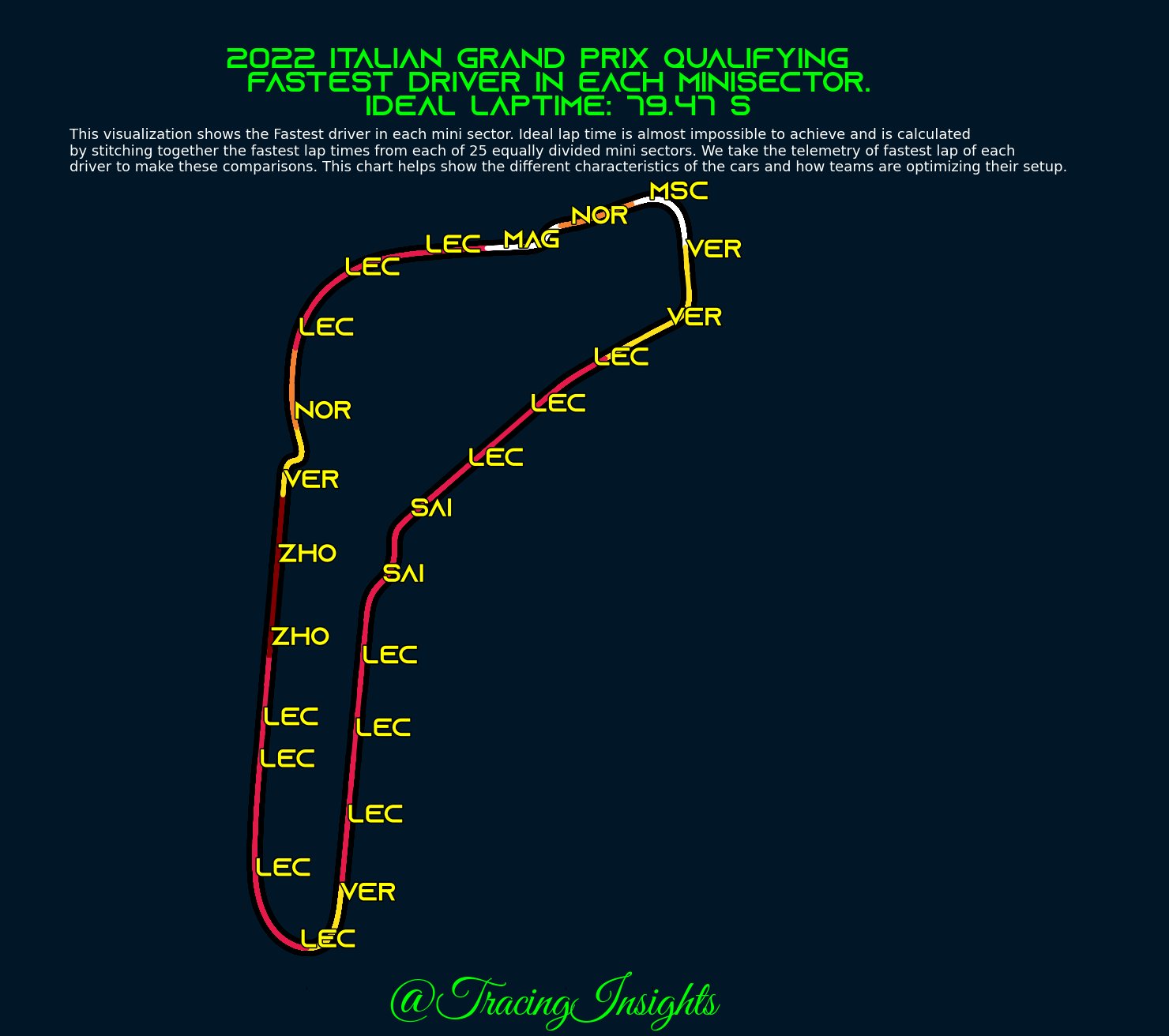 Ο Russell προτίμησε να κάνει την τελευταία του προσπάθεια με χρησιμοποιημένο σετ ελαστικών μαλακής γόμας. Οι οδηγοί της Ferrari καθώς και ο Verstappen, έχουν εξασφαλίσει δύο άθικτα σετ ελαστικών μαλακής γόμας για τον αγώνα, πέραν από 1 νέο σετ μέσης γόμας. Η καταπόνηση των ελαστικών δεν είναι πολύ υψηλή στη Monza και η προτιμώμενη στρατηγική αναμένεται να είναι αυτή του 1 pit stop, αλλά οι ομάδες είναι προνοητικές για την περίπτωση παρέμβασης αυτοκινήτου ασφαλείας.