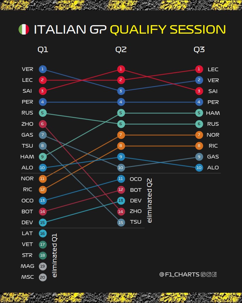 Ο Charles Leclerc σημείωσε τον ταχύτερο χρόνο των κατατακτήριων δοκιμών για να κατακτήσει την pole position με το σπαθί του, αν και ό,τι και να συνέβαινε, αυτός θα εκκινούσε αύριο από την πρώτη θέση, λόγω των ποινών που έχουν δεχθεί οι υπόλοιποι οδηγοί γύρω του. Ο Μονεγάσκος δήλωσε ότι πίεσε σκληρά στην τελευταία του προσπάθειά του για να πετύχει αυτό το αποτέλεσμα. Ο Max Verstappen βρέθηκε μεταξύ των δύο Ferrari, αλλά έχει ποινή 5 θέσεων στη σειρά εκκίνησης, συνεπώς, αναμένεται να εκκινήσει από την 7η θέση, εφόσον οι ποινές εφαρμοστούν ξεκινώντας από τις πίσω θέσεις και πηγαίνοντας προς τα εμπρός, όπως πιστεύουμε ότι θα συμβεί.