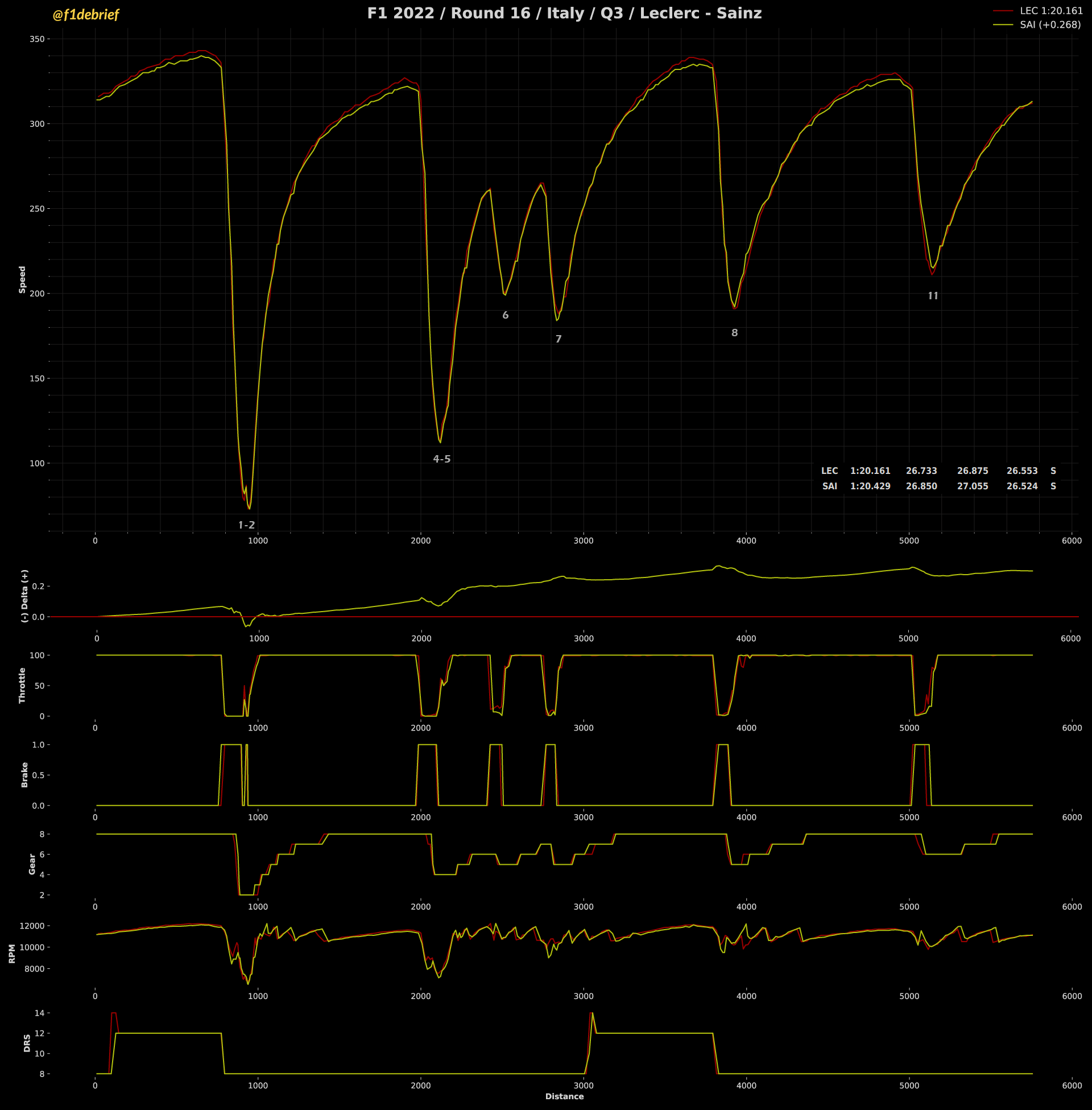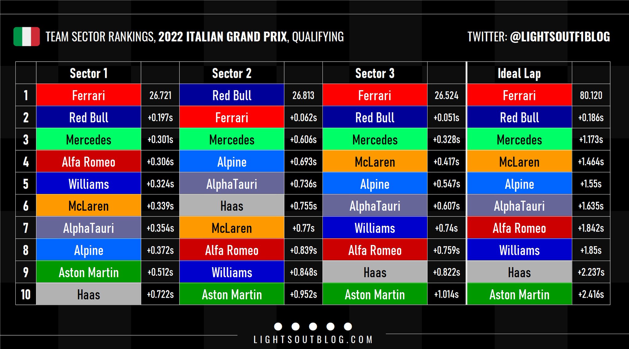 O Carlos Sainz ήταν ταχύτερος από τον team-mate του Q2, ωστόσο ο Ισπανός δεν είχε slipstream στην τελική του προσπάθεια στο Q3. Ο Leclerc βρισκόταν αρκετά πίσω από τον προπορευόμενό του, αλλά στο τελικό sector ήταν αρκετά κοντά για να επωφεληθεί. Η Red Bull έχει επιλέξει στήσιμο με υψηλότερο αεροδυναμικό φορτίο. Κατά συνέπεια, θυσίασε λίγη από την ταχύτητά της στις ευθείες για τις κατατακτήριες δοκιμές, ώστε να προστατεύσει καλύτερα τα ελαστικά της στον αγώνα.