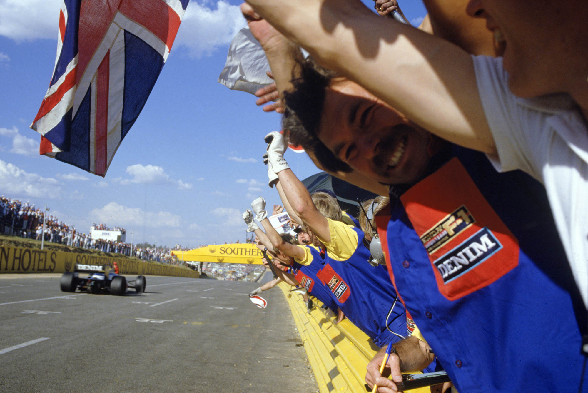 Πρόκειται για το GP Νότιας Αφρικής του 1985, στο Kyalami, το οποίο διεξήχθη Σάββατο. Σε εκείνη την περίπτωση όπου ο Βρετανός Nigel Mansell κατέκτησε τη 2η νίκης της καριέρας του στην F1 με τη Williams-Honda, με τον team-mate του, Keke Rosberg να τον ακολουθεί.