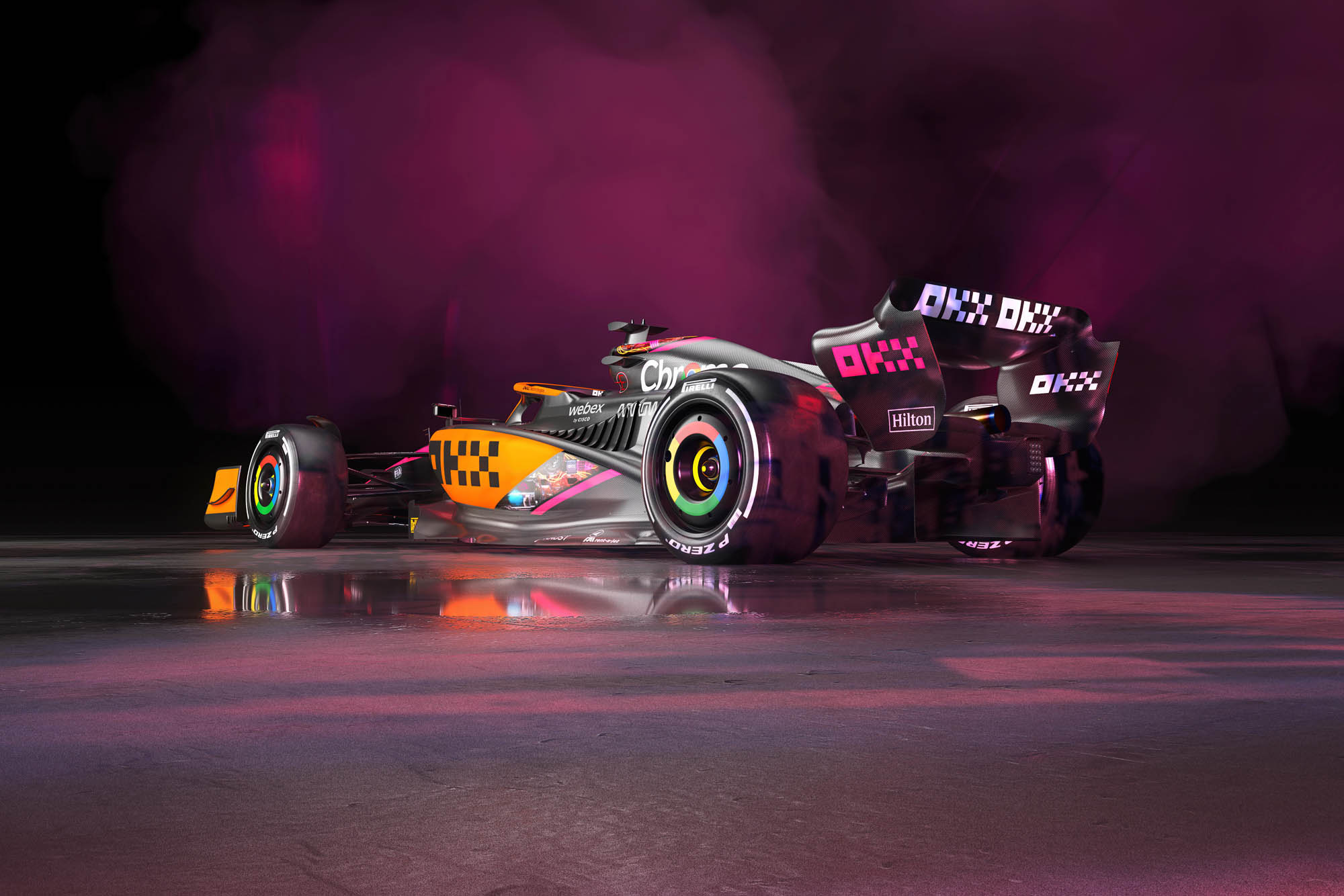 Τα μονοθέσια της McLaren θα φέρουν έναν ειδικό χρωματισμό για τα επόμενα δύο Grand Prix της φετινής σεζόν στη Formula 1. Σε Σιγκαπούρη και Ιαπωνία, θα έχουν προστεθεί φούξια πινελιές και cyberpunk σχέδια, σε έναν χρωματισμό που έχει ονομαστεί «Future Mode». H αλλαγές έγιναν σε συνεργασία με την εταιρεία κρυπτονομίσματος OKX, που είναι σπόνσορας της βρετανικής ομάδας.