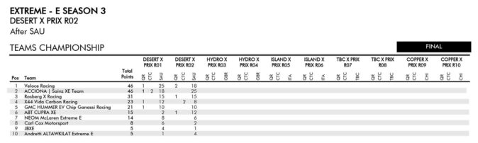 H ομάδα του Carlos Sainz, στην οποία ο Σουηδός δύο φορές Πρωταθλητής του DTM, Mattias Ekstrom αντικαθιστά τον τραυματισμένο από το Ράλλυ Ντακάρ Ισπανό Πρωταθλητή του WRC, πλαισιώνοντας τη Laia Sanz, κατέκτησε την πρώτη νίκη της στο θεσμό του Extreme E στο δεύτερο αγώνα.