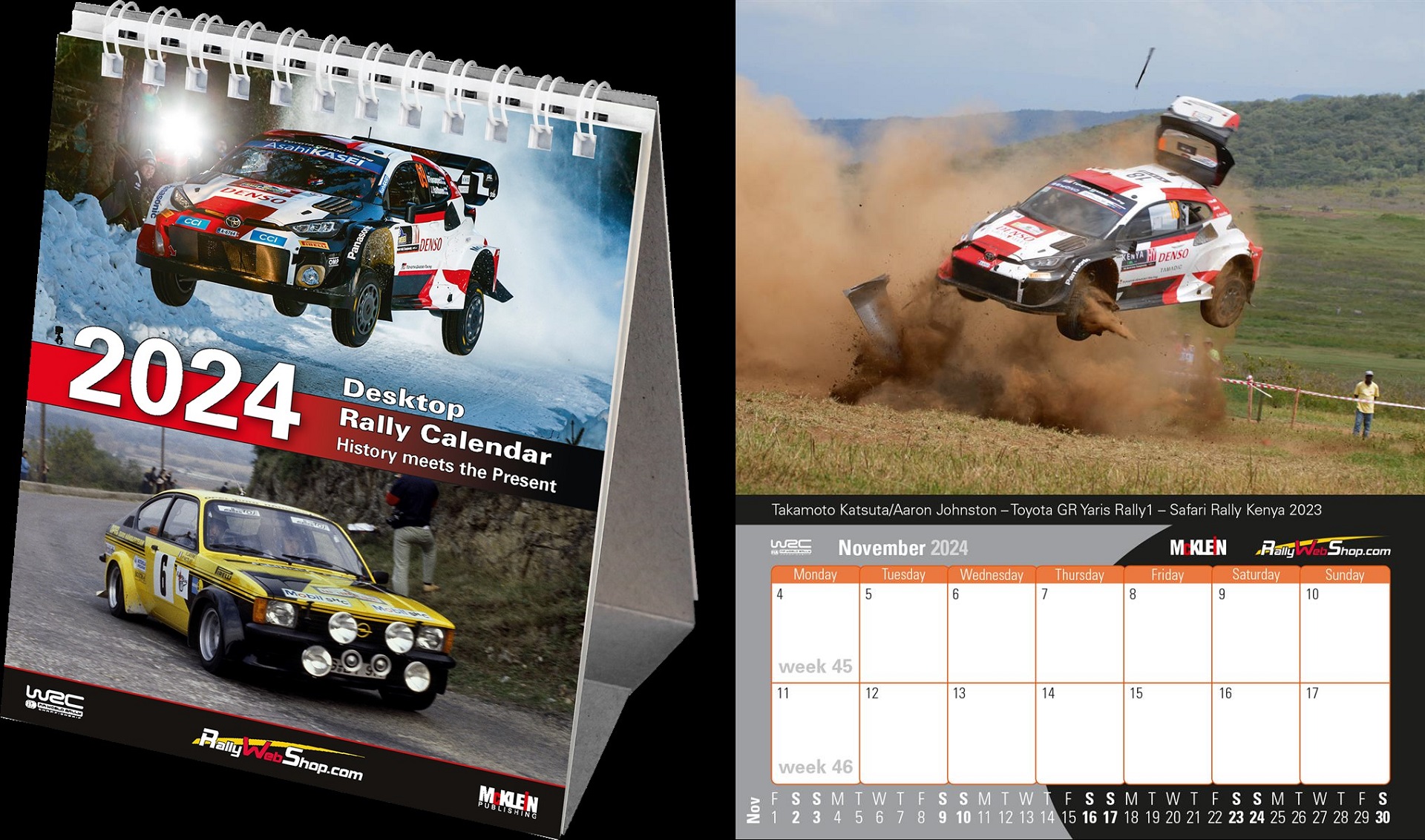 Το επιτραπέζιο ημερολόγιο 2024 της McKlein, κάθε δεκαπενθήμερο προσφέρει στον λάτρη των ράλλυ μια επιλογή μεταξύ κλασικού ή μοντέρνου. Τα δύο θέματα είναι εναλλάξιμα σε ελάχιστο χρόνο: ένα από το παρελθόν, ένα από την τελευταία σεζόν του WRC.