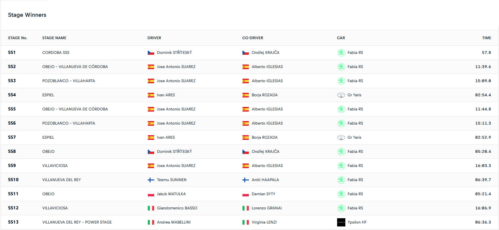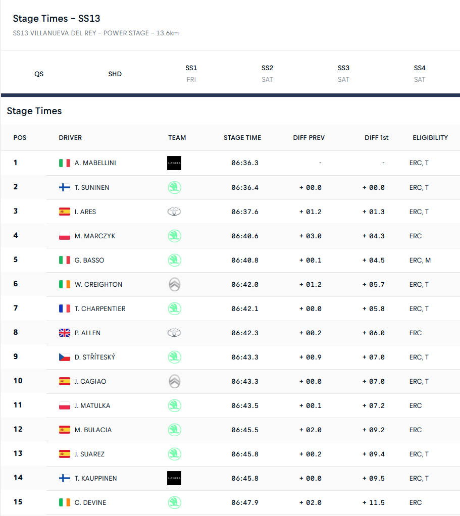 ERC Αποτελέσματα Ράλλυ Ανδαλουσίας 2026
