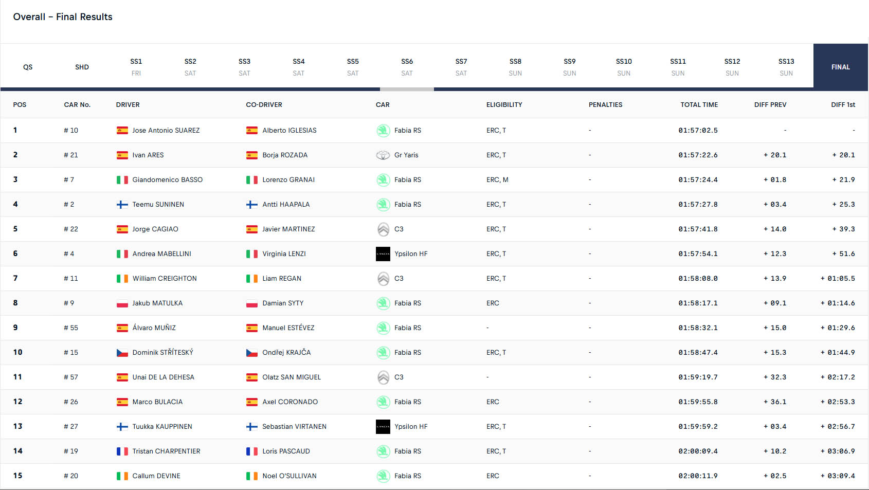 O Ιταλός Giandomenico Basso, κάτοχος δύο τίτλων στο ERC, φαινόταν ότι θα τερμάτιζε στη 2η θέση με το εξοπλισμένο με ελαστικά της Pirelli Skoda Fabia, αλλά στην τελική Power Stage, ο Ivan Ares κατάφερε να κινηθεί 3,2 δλ. ταχύτερα με το εφοδιασμένο με ελαστικά Pirelli Toyota GR Yaris Rally2 και να αποσπάσει τη 2η θέση την τελευταία στιγμή, για να κάνει ένα ισπανικό «1-2».