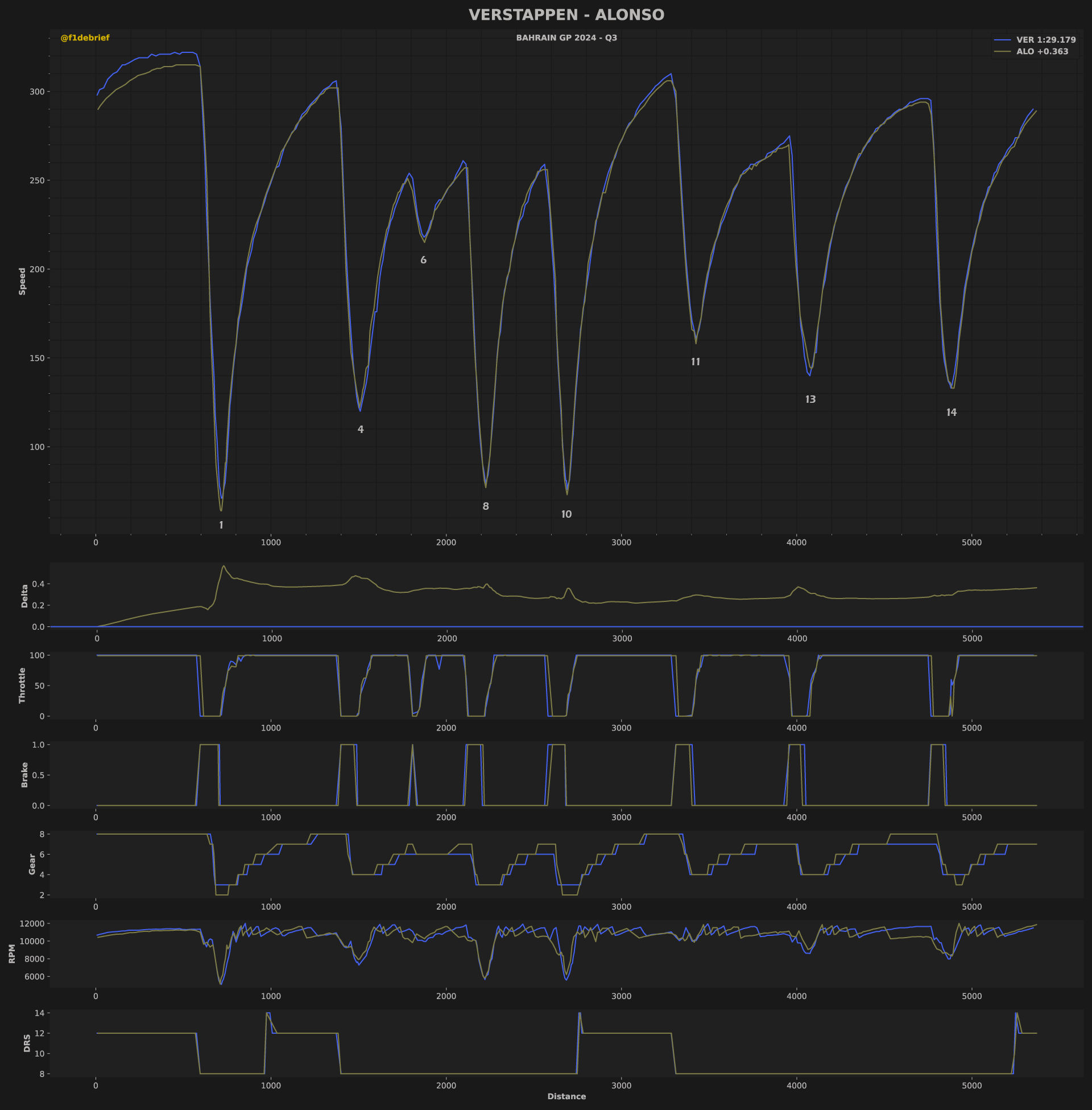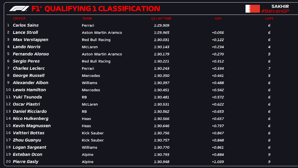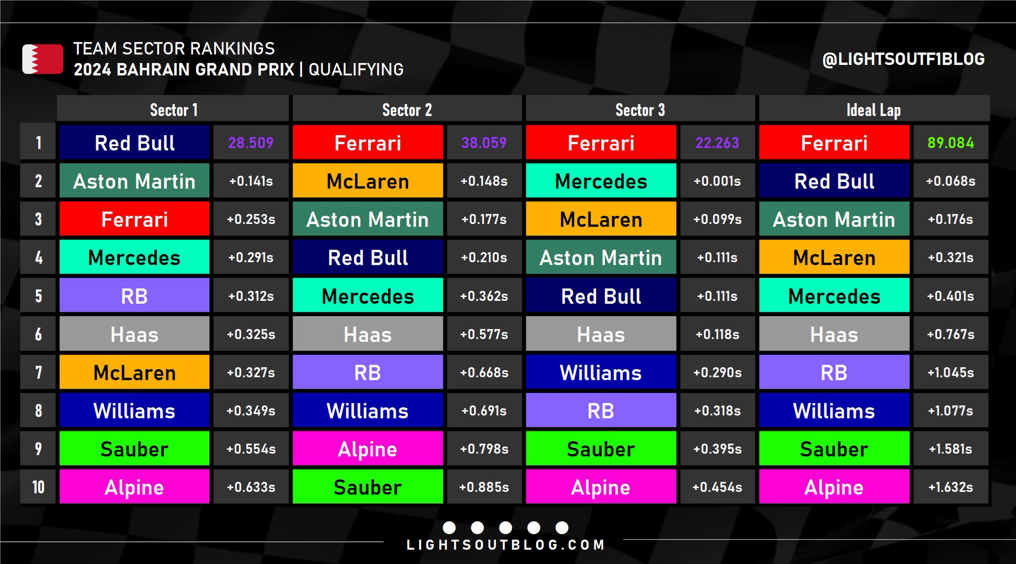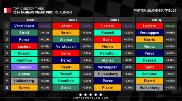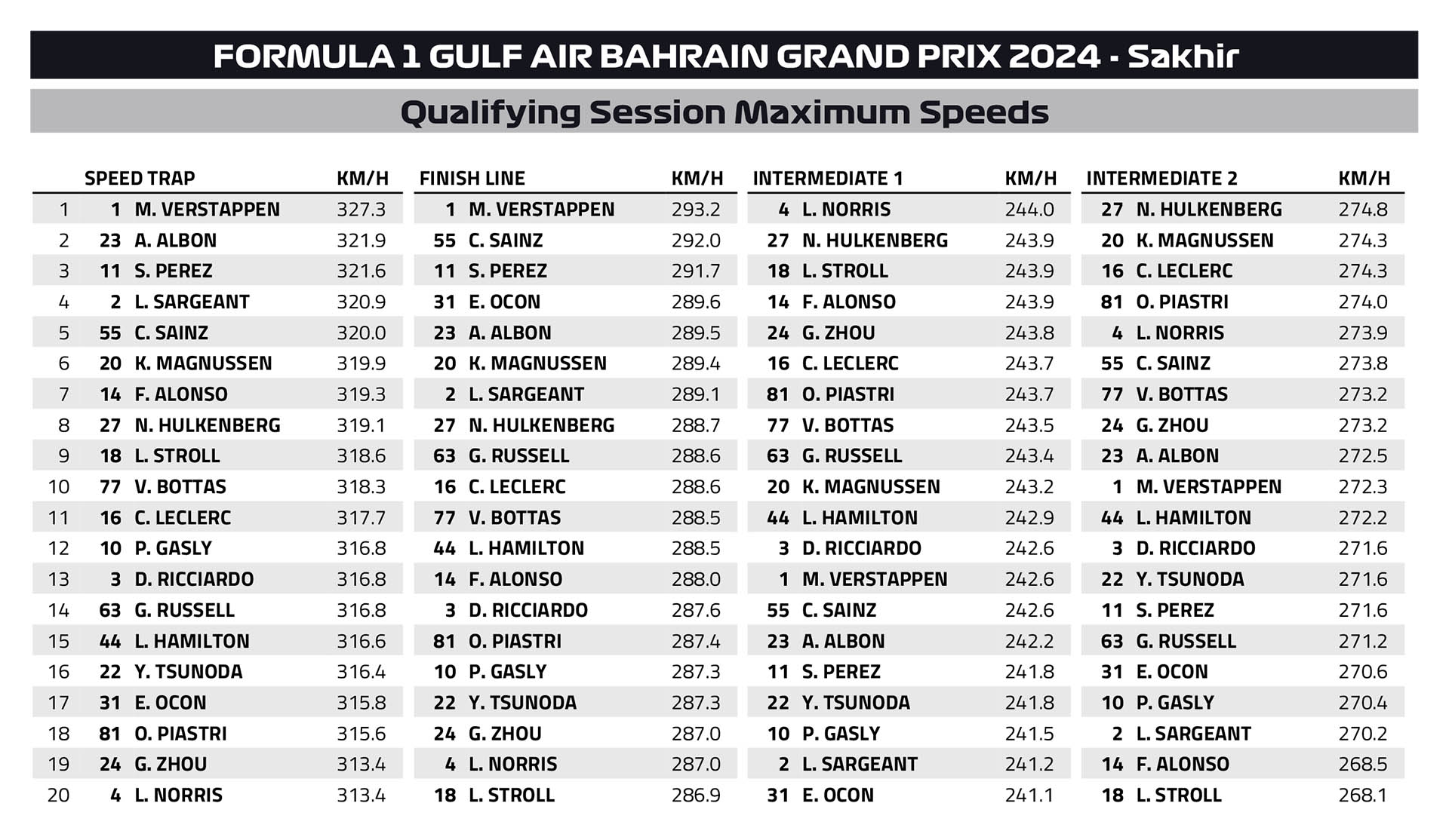 O Max Verstappen ξεκίνησε τη σεζόν της Formula 1 του 2024 με την 33η pole position της καριέρας του (ισοφαρίζοντας τους Jim Clark και Alain Prost στον αντίστοιχο πίνακα στατιστικών σε όλη την ιστορία του σπορ) και την 3η του στο GP Μπαχρέιν. Στην ταχύτερη προσπάθειά του, ο Ολλανδός εκμεταλλεύτηκε το slipstream του Oscar Piastri στην αρχή του γύρου του και ο χρόνος του (1:29.178) ήταν ανταγωνιστικός, αλλά όχι ο ταχύτερος της διαδικασίας. Ο Verstappen απολογήθηκε από το μηχανολόγο αγώνα, Gianpiero Lambiase, μάλλον επειδή είχε προβλέψει ότι δε θα μπορούσε να κατακτήσει την pole position.