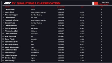 O Carlos Sainz θα εκκινήσει από την 4η θέση, έχοντας εκμεταλλευτεί και αυτός το slipstream άλλου μονοθεσίου στο ξεκίνημα του γύρου του, ωστόσο, έχασε 0,1 δλ. από τον team-mate του στη Ferrari και δε βρήκε ποτέ το κέρδος που περίμενε στο τελικό σκέλος. Oι Sainz, και Russell είχαν καταφέρει να διατηρήσουν δύο φρέσκα σετ ελαστικών για το Q3 και είχαν δύο προσπάθειες.