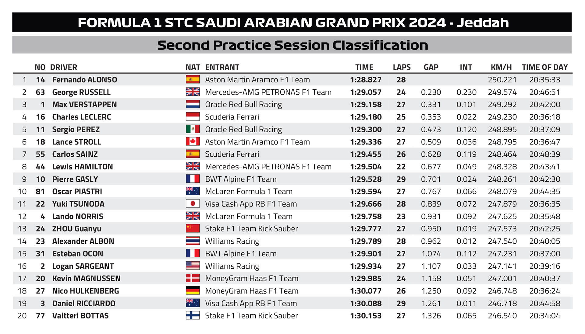 O Fernando Alonso ήταν ο ταχύτερος οδηγός στην πιο σημαντική περίοδο ελεύθερων δοκιμών του GP Σαουδικής Αραβίας και μάλιστα με διαφορά 0,23 δλ. από το George Russell (Mercedes) και 0,33 δλ. από το Max Verstappen (Red Bull).