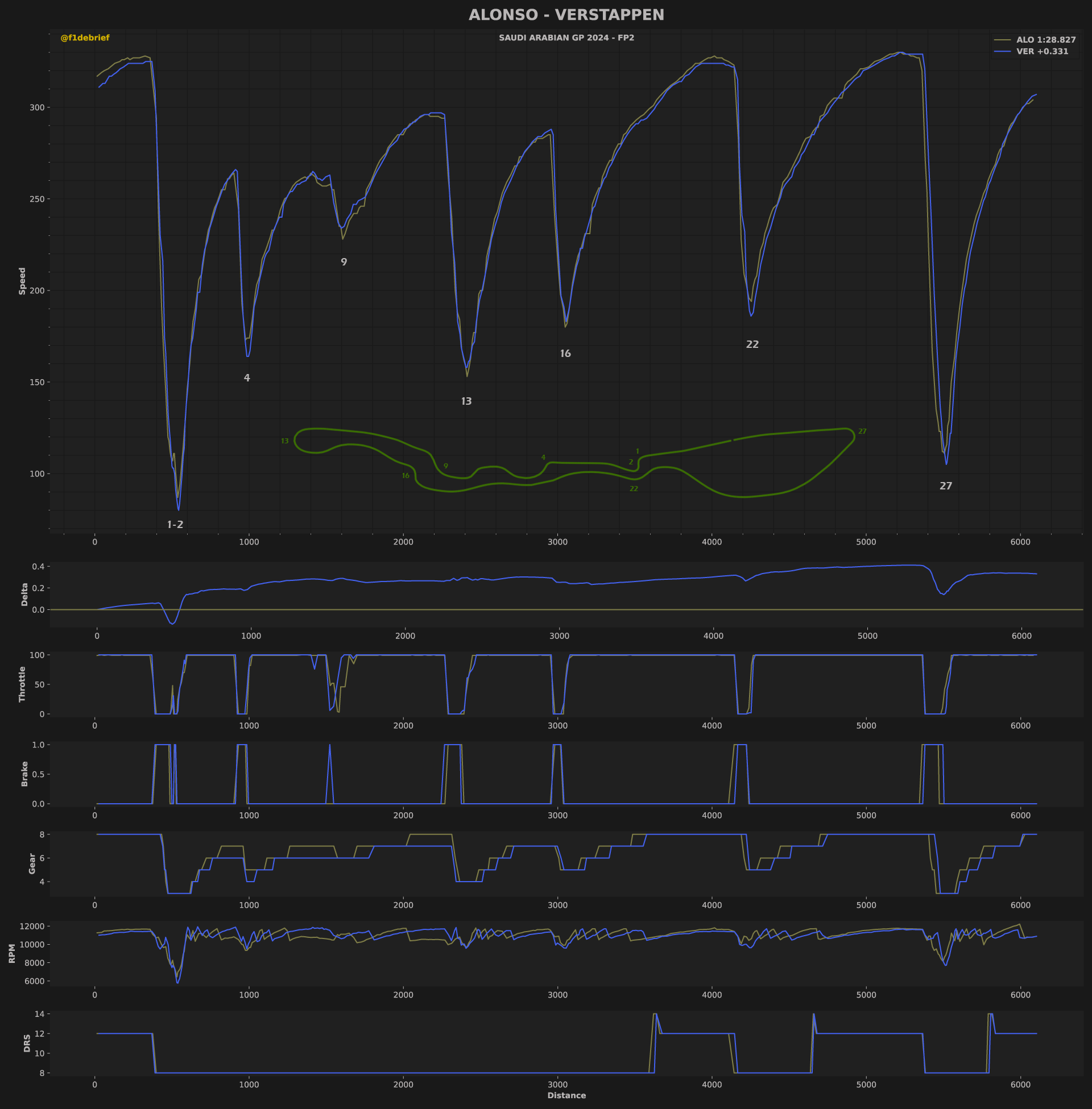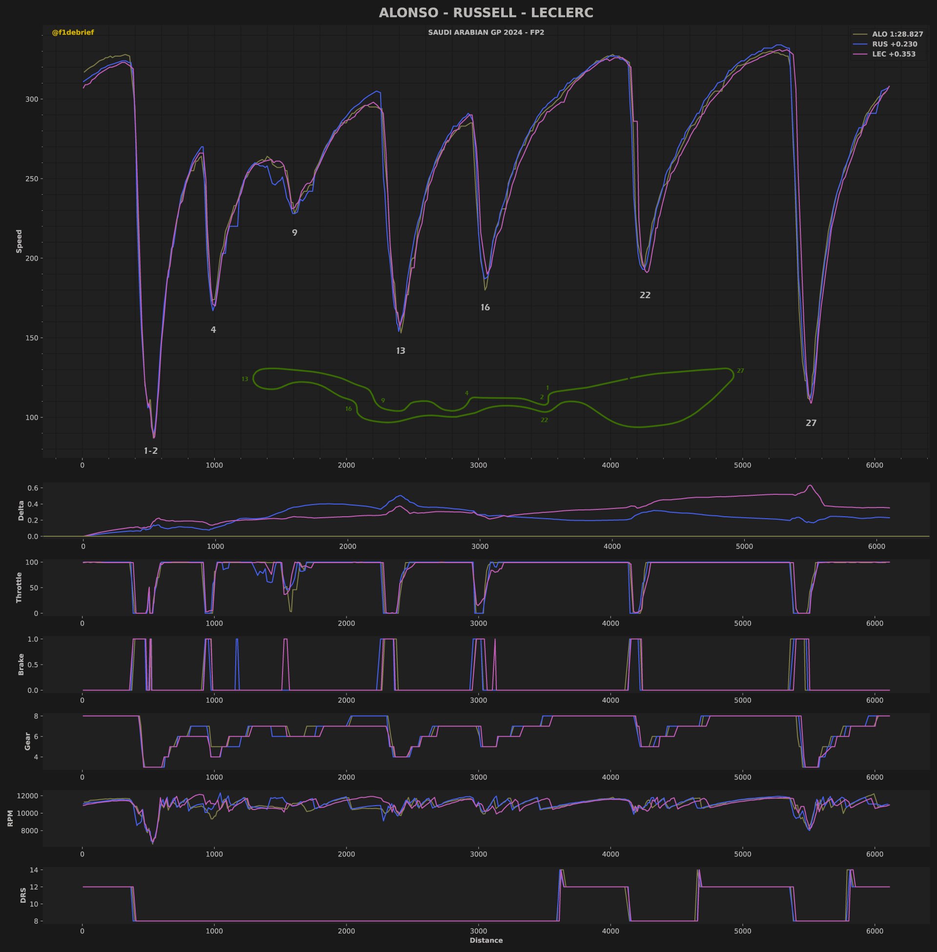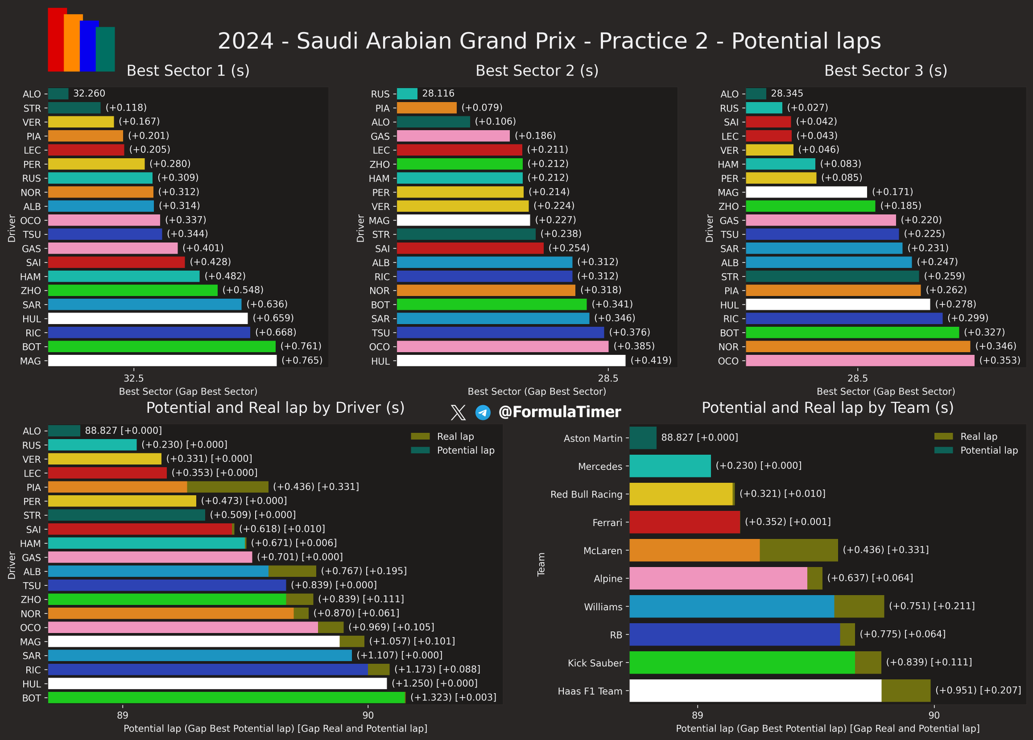 Ο Alonso έδειχνε πολύ δυνατός και αυτή τη φορά, έπειτα από το FP1, όπου σημείωσε το 2ο χρόνο, παρότι φαινόταν από την τηλεμετρία ότι είχε συντηρητικές ρυθμίσεις μονάδας ισχύος. Ο γύρος του Ισπανού με τη μέση γόμα ήταν μόλις 0,017 δλ. πίσω από αυτόν του Verstappen. Μερικές επικίνδυνες στιγμές δημιουργήθηκαν όταν ο Alonso πέρασε ανάμεσα στο Sainz (που αναγκάστηκε να βγει εκτός πίστας) και του Stroll, ενώ ο Russell κλείστηκε στον τοίχο από τον Tsunoda. Επίσης, ο Sainz αισθάνθηκε ότι τον εμπόδισε ο Norris.