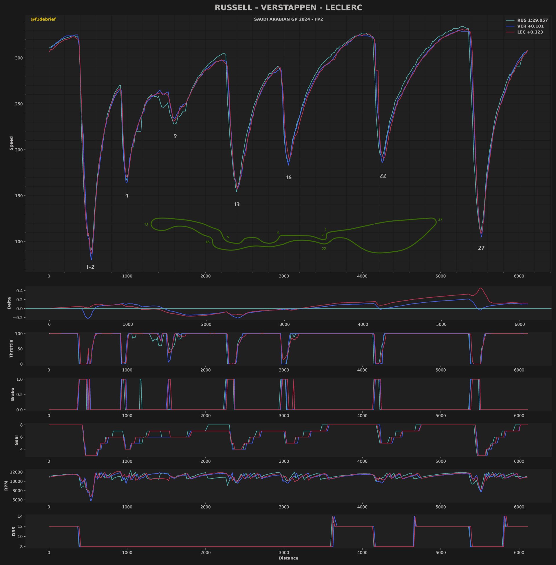 Μόλις 22 χλστ. του δλ. πίσω από το Verstappen τοποθέτησε τη Ferrari του o Charles Leclerc, ενώ την πρώτη πεντάδα συμπλήρωσε ο Sergio Perez, με τη δεύτερη Red Bull. O Lance Stroll, ανεβαίνοντας στην 6η θέση (μισό δλ. πίσω από τον team-mate του), έδειξε ότι η Aston Martin είχε τη δυνατότητα να γράψει καλούς χρόνους, αν και δε γνωρίζουμε τις ρυθμίσεις μονάδας ισχύος και το φορτίο καυσίμου. Ωστόσο, ο ρυθμός αγώνα του Alonso ήταν αρκετά καλός και σταθερός.