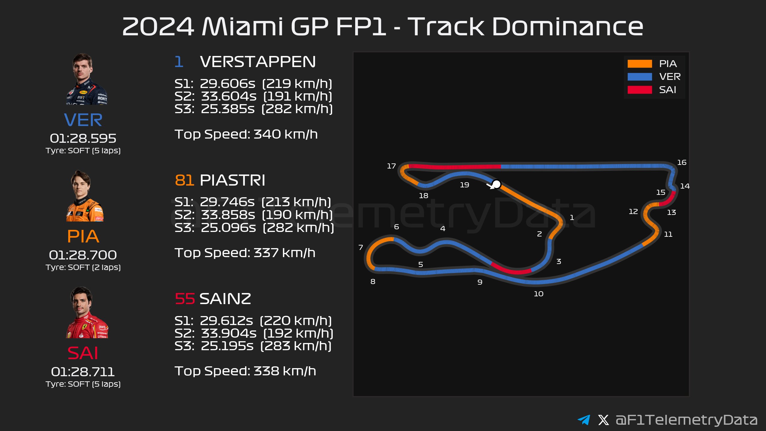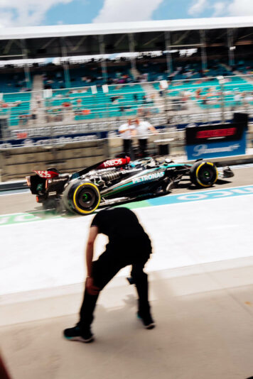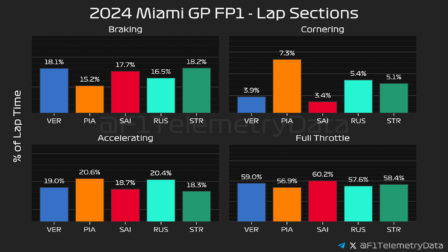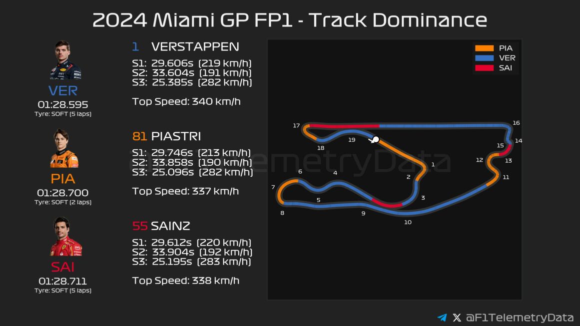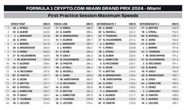 Για το ξεκίνημα του FP1 του GP Μαϊάμι της Formula 1, οι Red Bull και Mercedes είχαν επιλέξει τη μέση γόμα, ενώ Ferrari, McLaren και Aston Martin τη σκληρή. Ήταν εμφανές ότι η πίστα ήταν ακόμα «χλωρή», και βελτιωνόταν συνεχώς καθώς στρωνόταν γόμα στην αγωνιστική γραμμή.