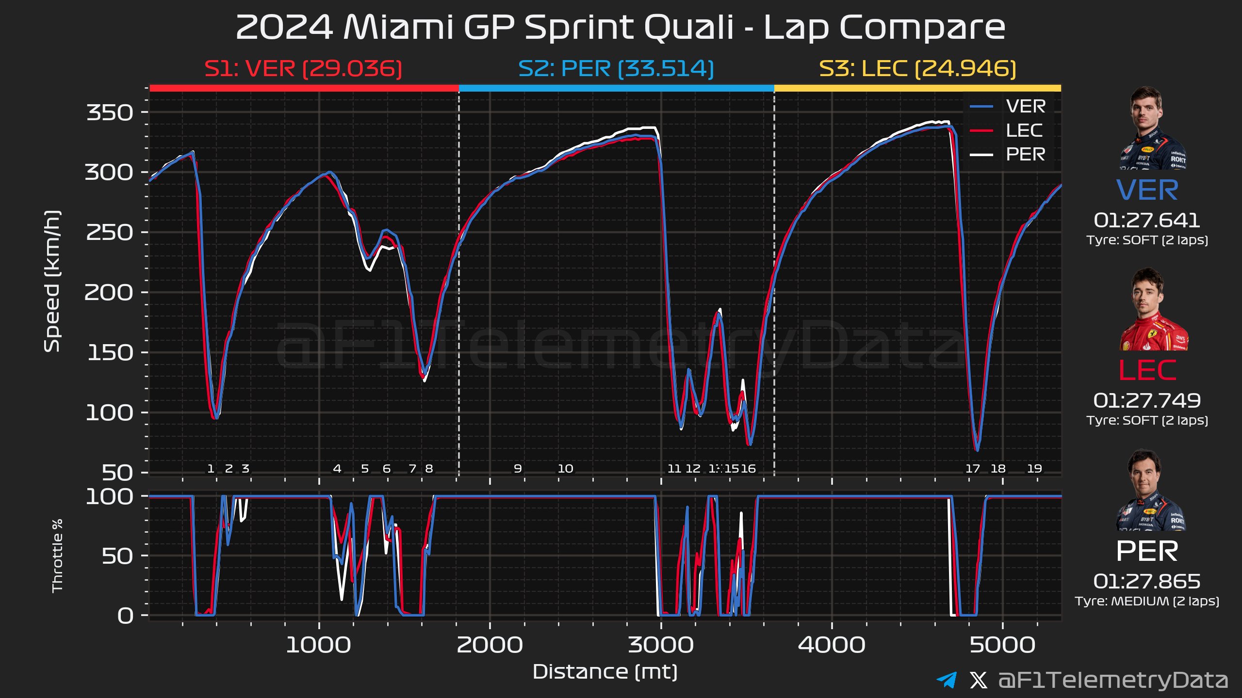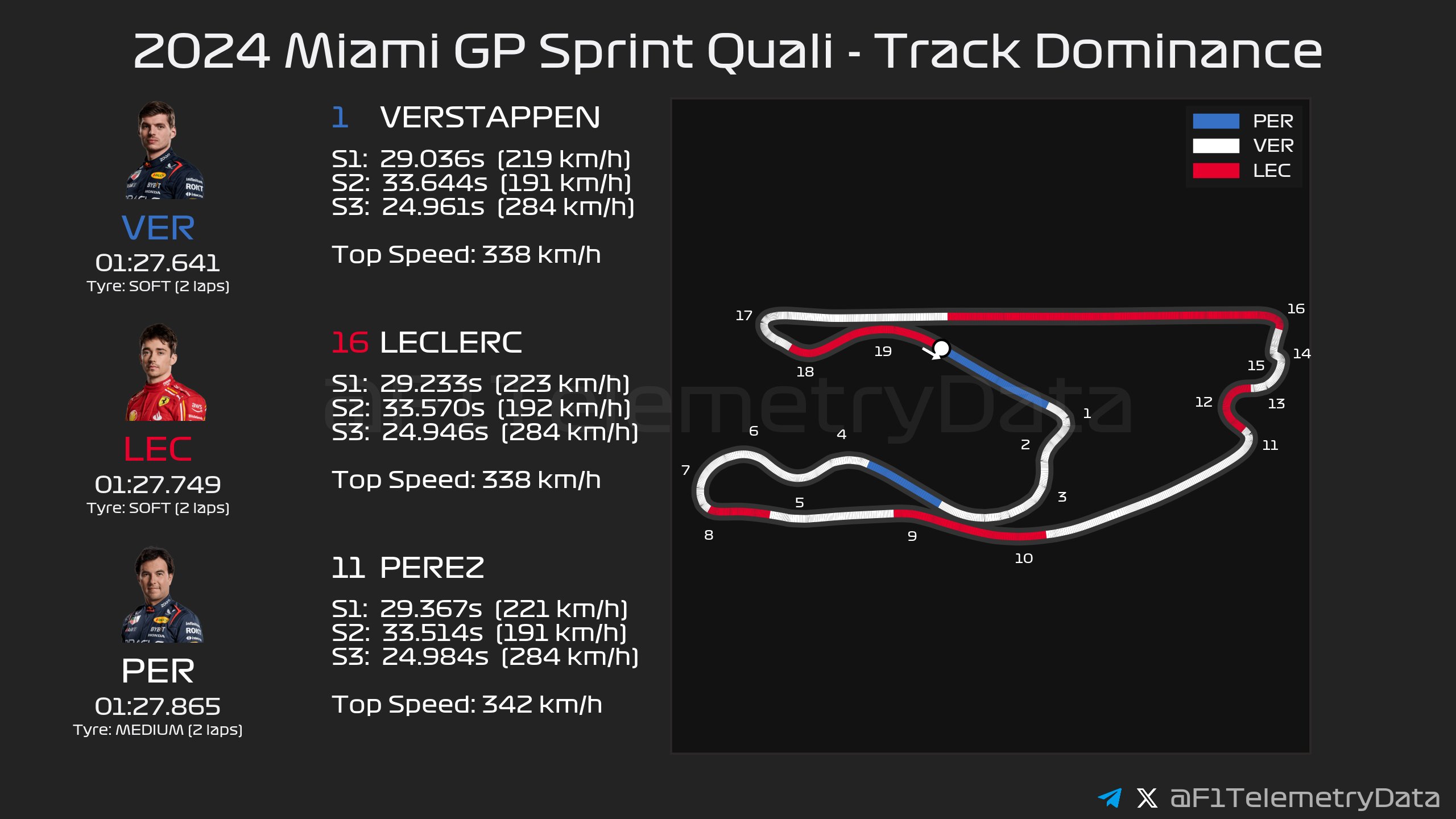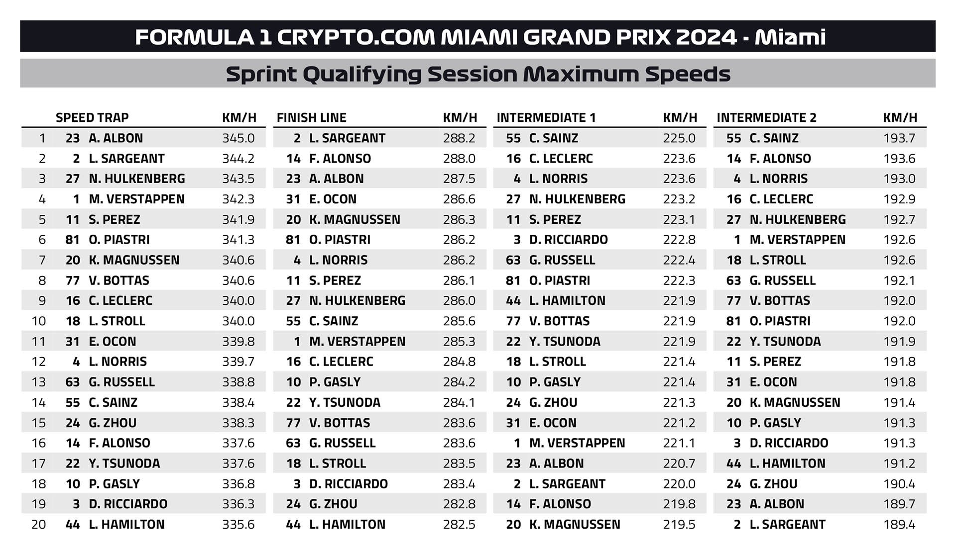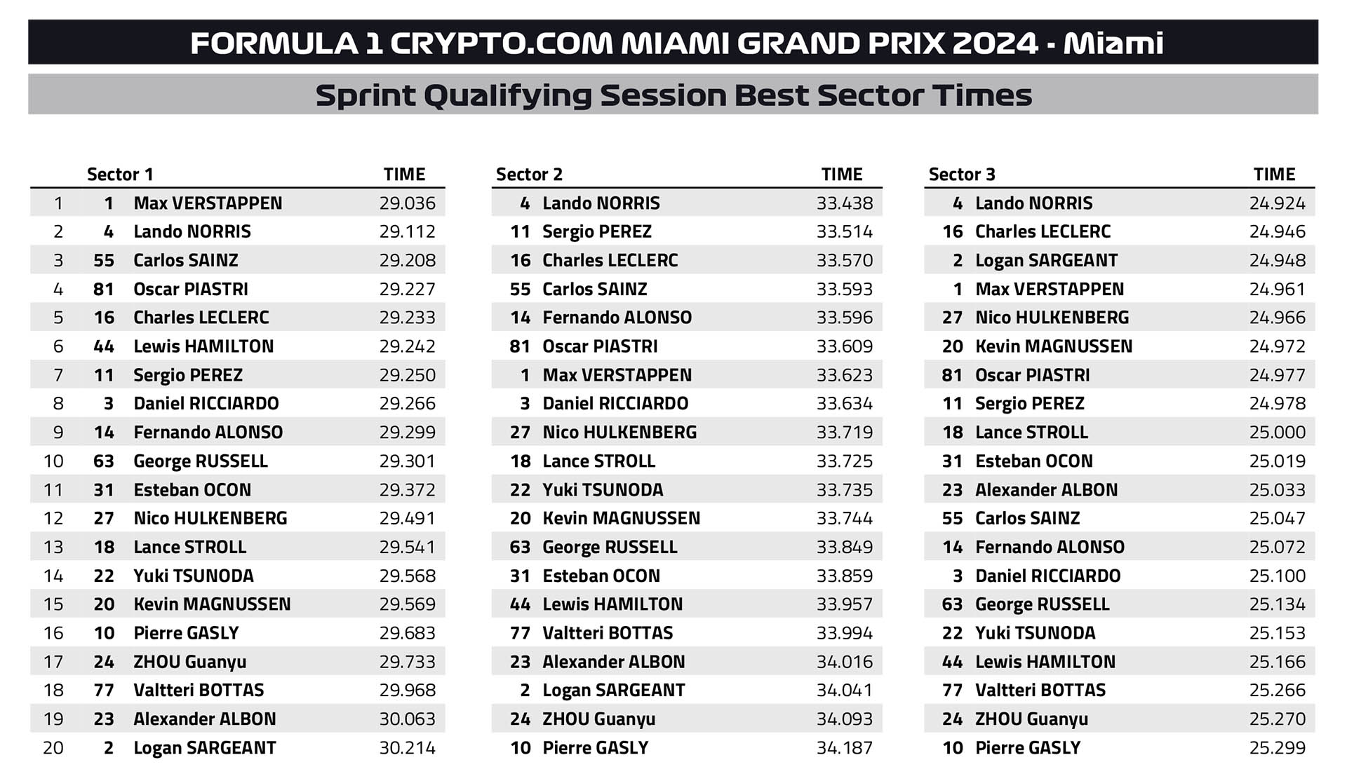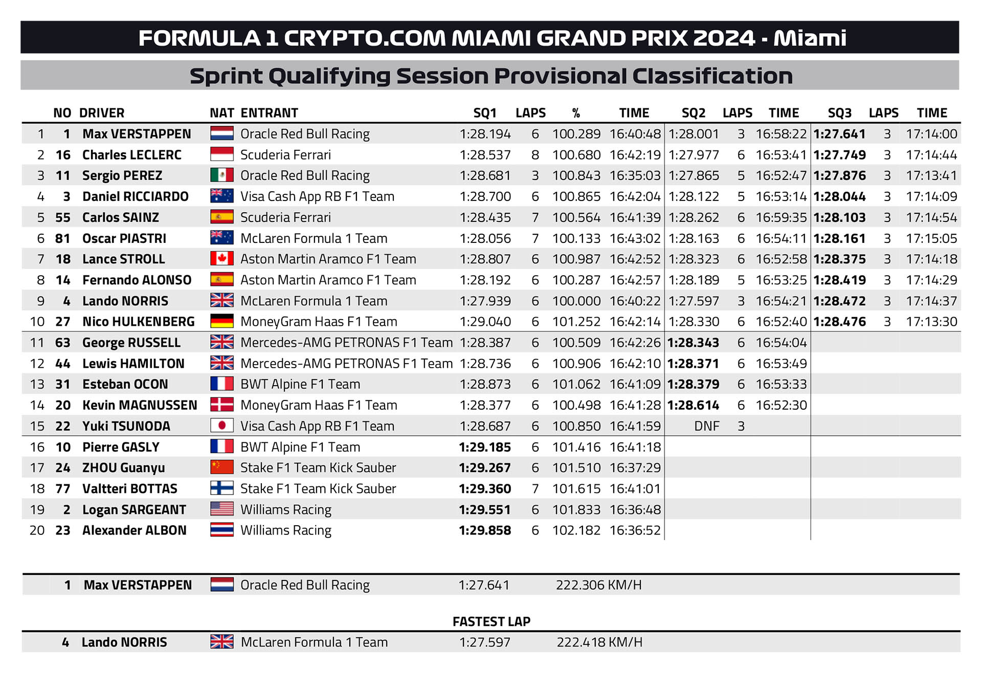 Ο Max Verstappen θα εκκινήσει με τη Red Bull το σπριντ του Grand Prix Μαϊάμι της Formula 1 από την pole position, παρότι δεν ήταν καθόλου ευχαριστημένος από την ταχύτερη επίδοσή του στο SQ3. Ο Ολλανδός οδηγός της Red Bull είχε μία χρονοβόρα στιγμή υπερστροφής στο chicane των στροφών 14/15. Ωστόσο, ήταν πολύ δύσκολο για τους οδηγούς να φέρουν τα ελαστικά τους στις ιδανικές θερμοκρασίες λειτουργίας για την τελική προσπάθεια.