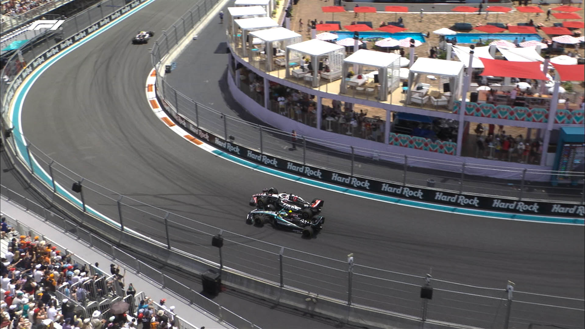 Πιο πίσω, ο Hamilton βούτηξε σε ένα κενό στην εσωτερική των Aston Martin, που είχαν μπλεγμένους τους τροχούς τους, με τον Alonso στην εσωτερική να προσπαθεί να αποφύγει τον Hamilton και να συγκρούεται με τον Stroll, ο οποίος χτύπησε με τη σειρά του τον Norris και τον έθεσε εκτός αγώνα, προκαλώντας την παρέμβαση του αυτοκινήτου ασφαλείας. Ο Alonso κατέληξε τελευταίος, ο Stroll εγκατέλειψε λόγω των ζημιών που υπέστη η Aston Martin του και οι αγωνοδίκες αποφάσισαν να μην επέμβουν. Ο Norris θα παρουσιαστεί στους αγωνοδίκες επειδή διέσχισε την πίστα πεζός.