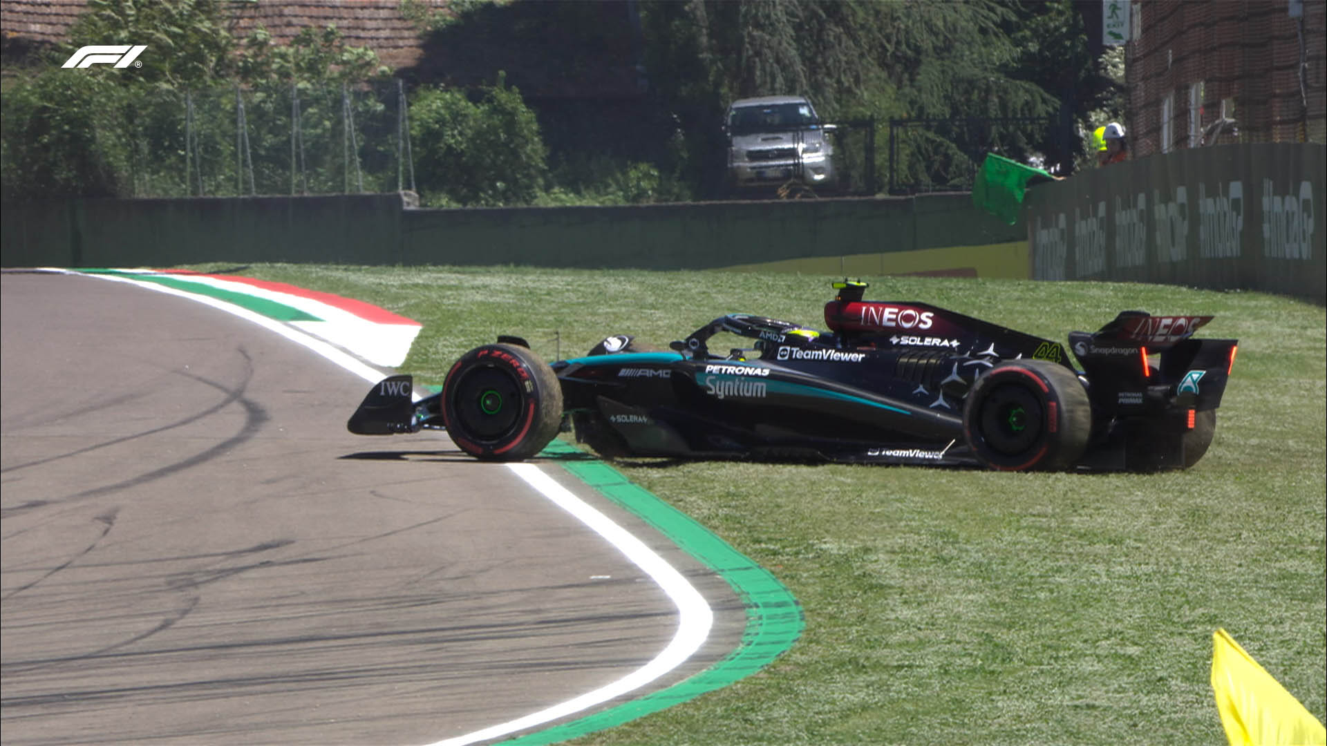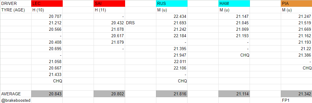 Ο Βρετανός είχε άλλη μία έξοδο στο ίδιο σημείο στα τελευταία λεπτά (με τη μέση γόμα). Νωρίτερα, ο Russell είχε μία στιγμή απότομης υπερστροφής στο chicane της Tamburello, έχοντας καβαλήσει άτσαλα το kerb, με αποτέλεσμα το δάπεδο της Mercedes να χτυπήσει σκληρά στο έδαφος και να αποσταθεροποιηθεί. Εντέλει, ο Hamilton, που είχε και δεύτερη έξοδο στην 11, κατέληξε στην 7η θέση, εμπρός από τις δύο McLaren, ενώ ο Fernando Alonso συμπλήρωσε την πρώτη δεκάδα με την αναβαθμισμένη Aston Martin.