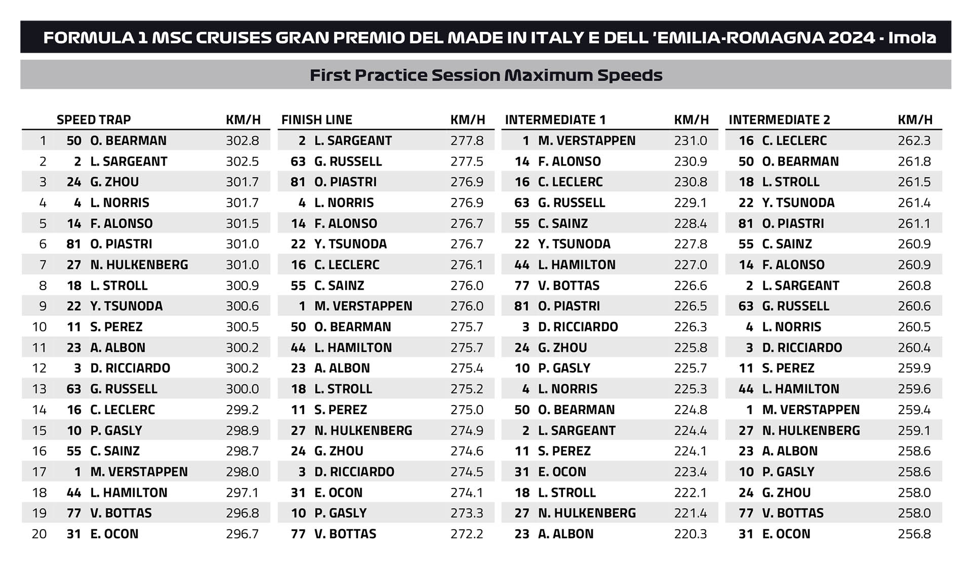 O 18χρονος Βρετανός οδηγός της Formula 2, Oliver Bearman, οδήγησε το μονοθέσιο του Kevin Magnussen στο στρατόπεδο της Haas για το FP1 (σημειώνοντας τον 15ο χρόνο), κάτι που θα συμβεί άλλες πέντε φορές φέτος.