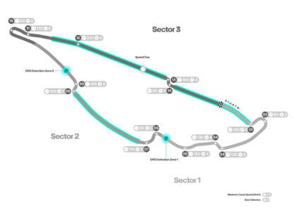 Ζώνες DRS: 3 (μεταξύ στροφών 7-8, 12-13 και 14-1)
