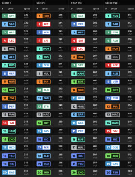 Ο Russell βρέθηκε 8ος, με το χρόνο που είχε σημειώσει με τη σκληρή γόμα. Στην αντίστοιχη προσπάθειά του, ο Lando Norris είχε σημειώσει τον ταχύτερο χρόνο στο πρώτο sector, αλλά μπλόκαρε τα φρένα του στην κατηφορική προσέγγιση της 4ης στροφής και βγήκε στα χαλίκια. Ο Βρετανός οδηγός της McLaren κατετάγη 13ος.