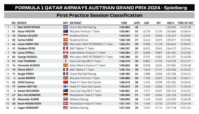 Παρακολουθήστε τα καλύτερα στιγμιότυπα από το FP1 του GP Αυστρίας