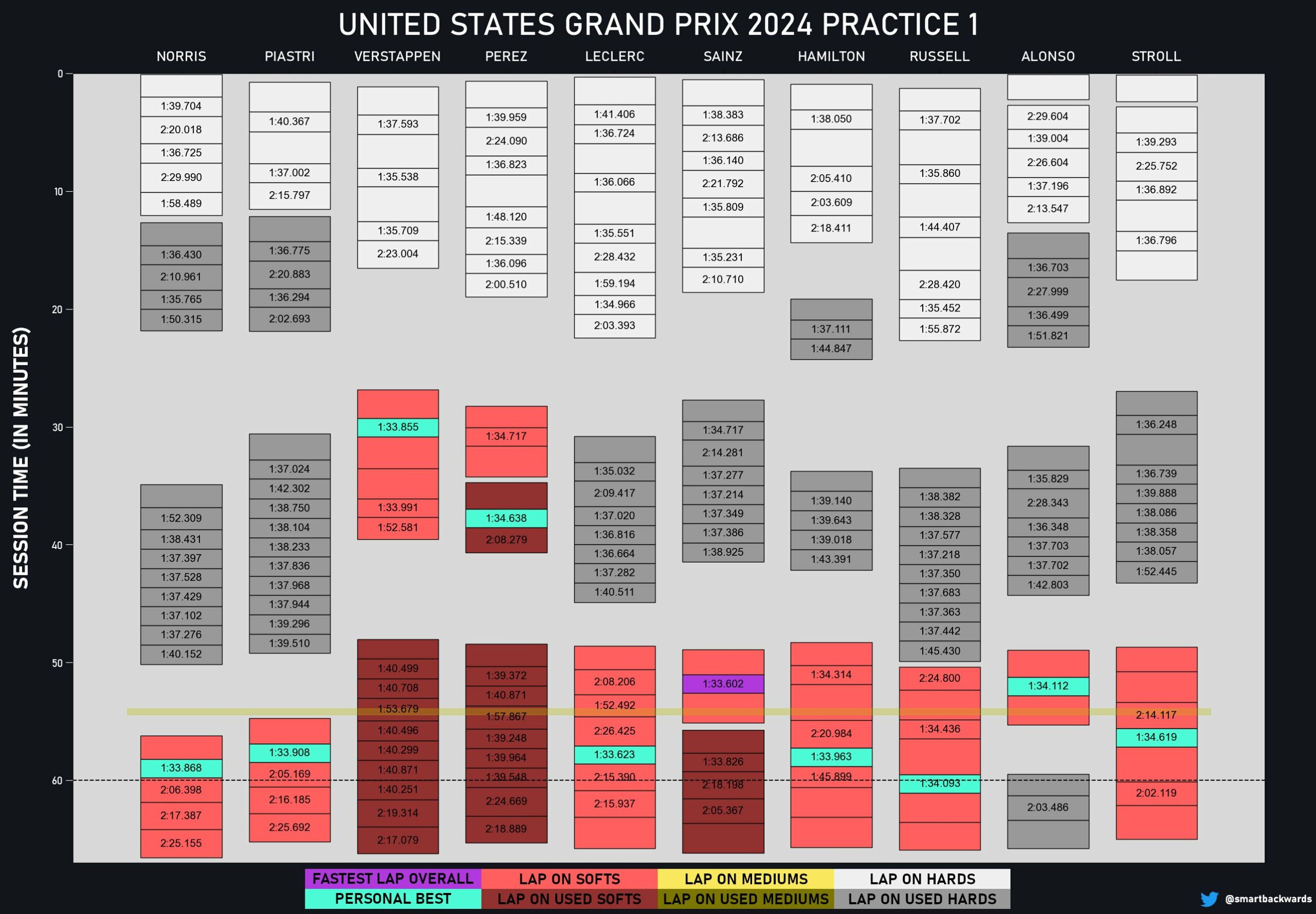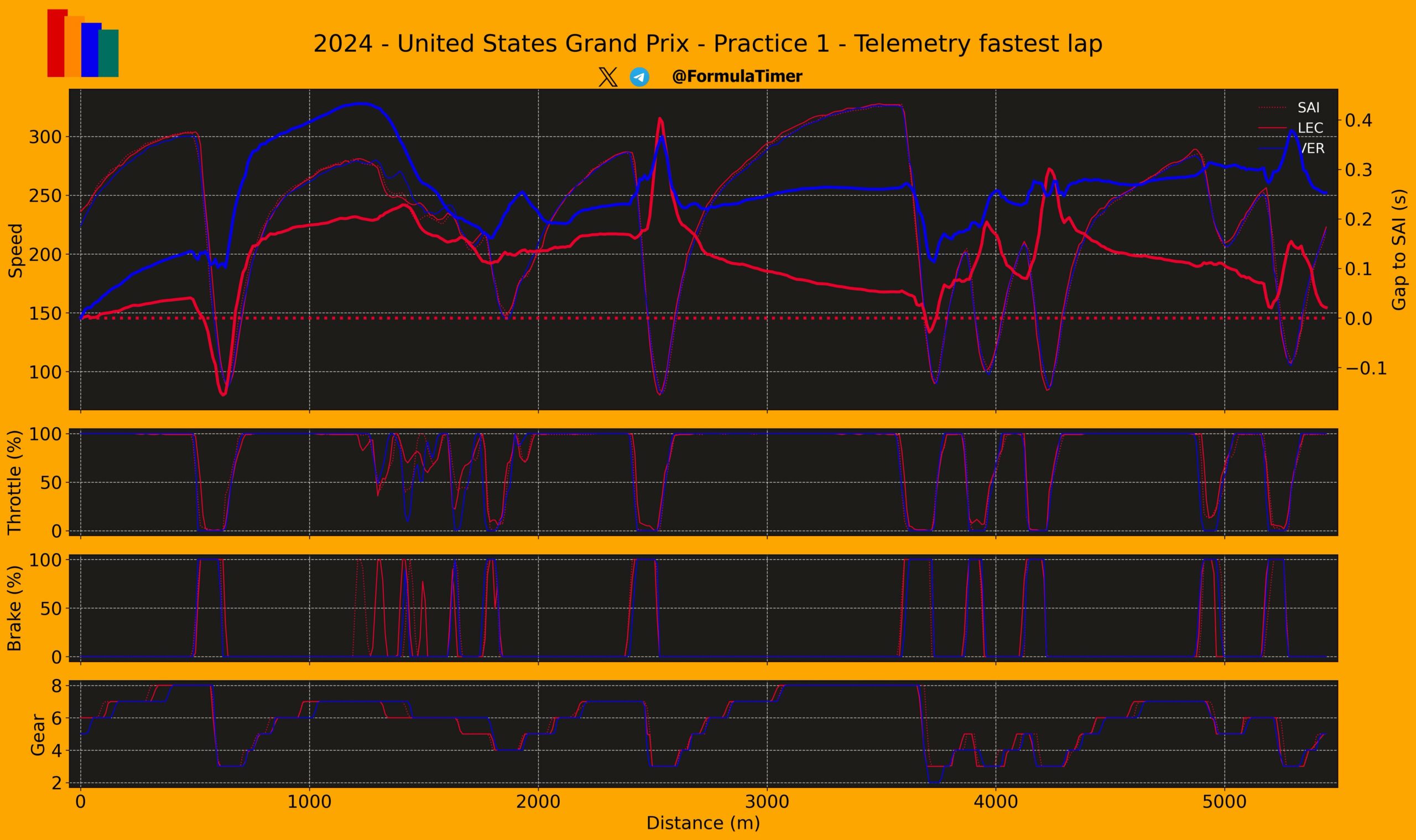 Ο Μονεγάσκος είχε μόνο μία γρήγορη προσπάθεια που μέτρησε, καθώς ο πρώτος του γρήγορος γύρος με τα μαλακά ελαστικά διακόπηκε από ένα σύντομο VSC. Ωστόσο, η Ferrari ξεκίνησε με το δεξί στο Circuit of the Americas, παρότι δεν έχει φέρει αναβαθμίσεις, σε αντίθεση με τους άμεσους αντιπάλους της. Η Ferrari είναι πολύ καλή στις αργές στροφές του τελευταίου sector της πίστας.