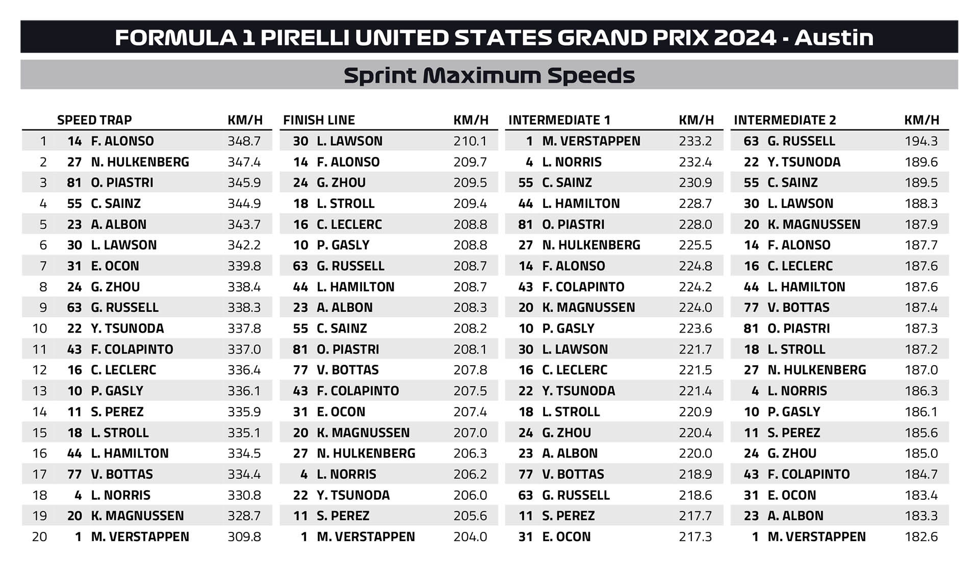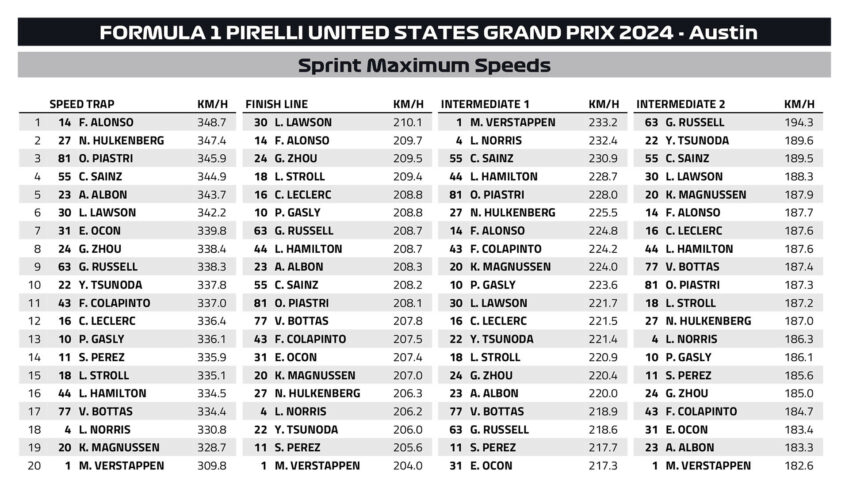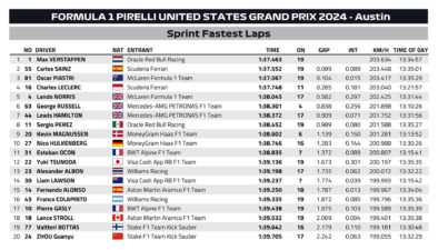 Στο σπριντ του Grand Prix Ηνωμένων Πολιτειών της Formula 1, ο Max Verstappen διατήρησε το 100% νικών στα φετινά σπριντ (4 στα 4). Με αυτό τον τρόπο, ο Πρωταθλητής επέστρεψε στις νίκες -σε οποιαδήποτε διαδικασία- για πρώτη φορά από τις 30 Ιουνίου, δηλαδή το προηγούμενο σπριντ της χρονιάς, στην Αυστρία. Ο Ολλανδός οδηγός της Red Bull ήταν poleman και παρέμεινε επικεφαλής καθ’ όλη τη διάρκεια των 19 γύρων του γεμάτου δράση σπριντ.