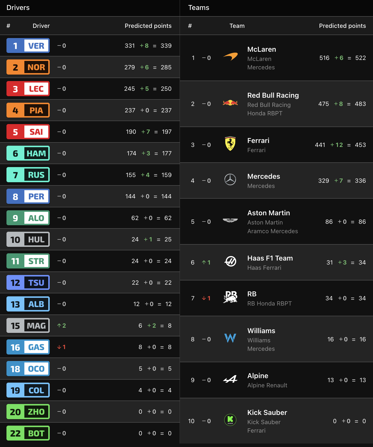 Τη βαθμολογούμενη οκτάδα συμπλήρωσαν οι δύο οδηγοί της Haas, Kevin Magnussen και Nico Hulkenberg, αποφέροντας 3 βαθμούς στη μικρή αμερικανική ομάδα, που προσπέρασε τη Racing Bulls για την 6η θέση στη βαθμολογία του Πρωταθλήματος Κατασκευαστών.