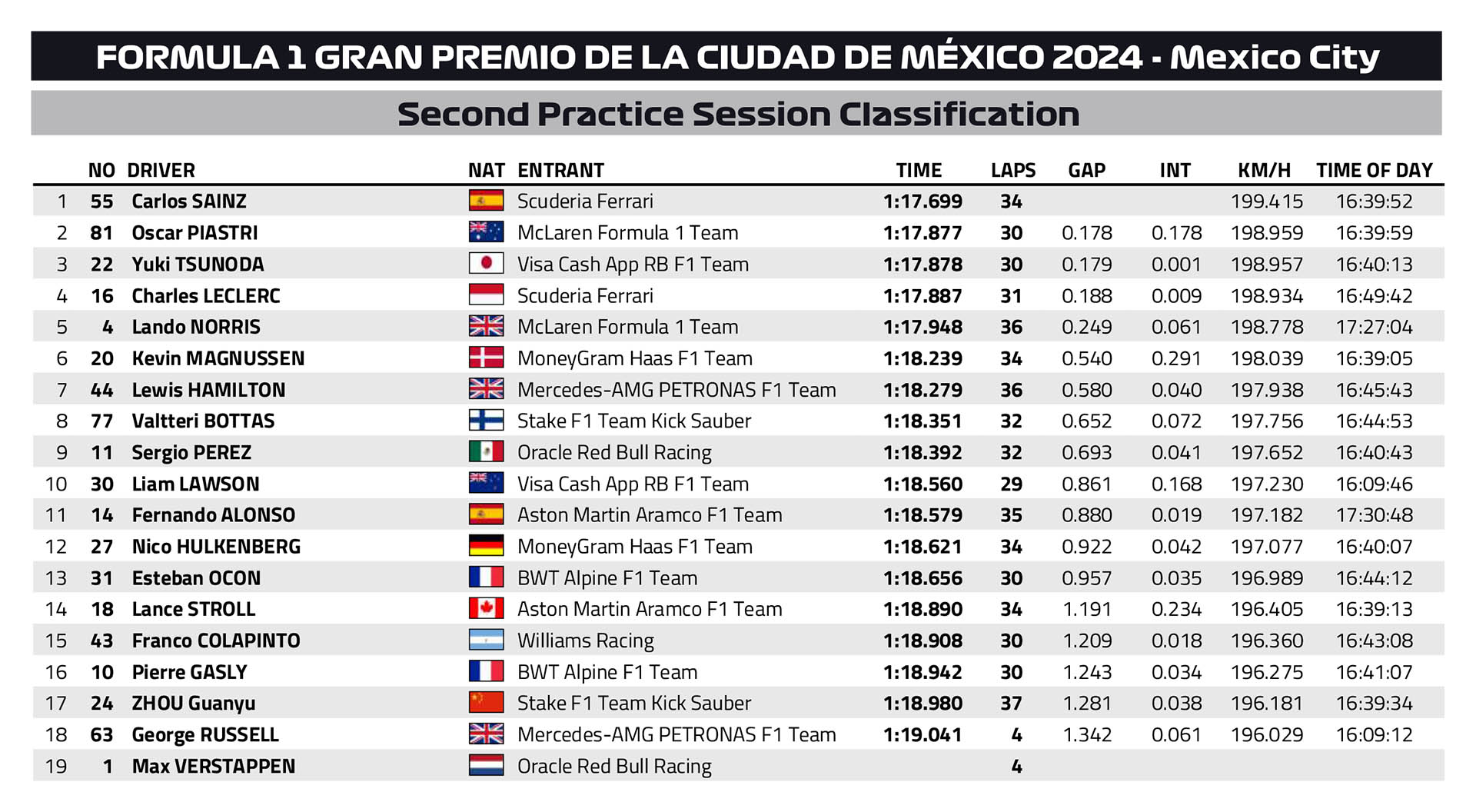 Όπως είναι φυσικό, οι χρόνοι δεν είχαν μεγάλη σημασία για το υπόλοιπο αγωνιστικό τριήμερο. Κάθε οδηγός είχε δύο σετ ελαστικών για τις δοκιμές και ήταν υποχρεωμένος να κάνει με το καθένα μία ακολουθία 5 γύρων απόδοσης διάρκειας με χαμηλό φορτίο καυσίμου 20 κιλών και μία ακολουθία προσομοίωσης αγώνα 12 γύρων με βαρύ φορτίο καυσίμου 100 κιλών.