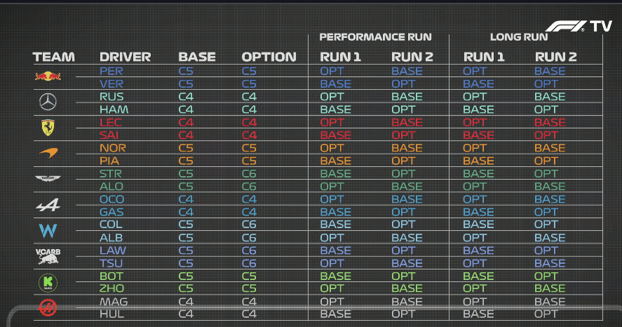 Mercedes, Ferrari, Haas και Alpine τη C4, Red Bull, McLaren και Sauber τη C5, ενώ Aston Martin, Racing Bulls και Williams χρησιμοποιούσαν τη C6. Η Pirelli ζήτησε από τις ομάδες να διατηρήσουν το ίδιο στήσιμο με το FP1, αλλά αν χρειάζονταν αλλαγές μπορούσαν να γίνουν εφόσον είχε ενημερωθεί ο προμηθευτής ελαστικών. Κατά τη διάρκεια της διαδικασίας, δεν επιτρέπονταν αλλαγές στο στήσιμο των μονοθεσίων εκτός από μικρές ρυθμίσεις στη γωνία πρόσπτωσης των πτερυγίων της εμπρός αεροτομής. Επίσης, απαγορεύονταν οι δοκιμαστικές εκκινήσεις.
