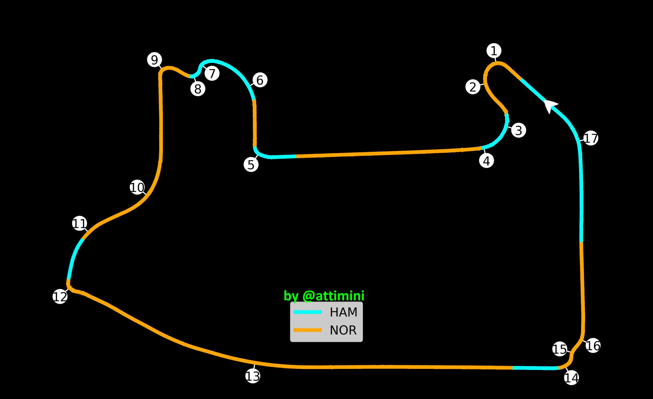 Ο Hamilton κατάφερε να αποσπάσει τον ταχύτερο χρόνο από τον Lando Norris για μόλις 0,011 δλ., o οποίος έδειξε τις δυνατότητες της McLaren σε αυτή την πίστα. Η Mercedes συνέχισε να επιδεικνύει καλή εικόνα στην ολισθηρή πίστα, αναπτύσσοντας αρκετά γρήγορα θερμοκρασία στα ελαστικά της, αλλά μένει να αποδειχθεί αν μπορεί να διατηρήσει αυτή τη φόρμα και στο υπόλοιπο Σαββατοκύριακο.