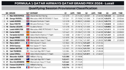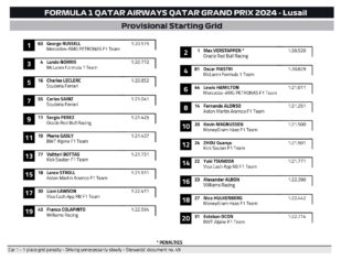 H Red Bull άλλαξε τελείως το στήσιμο του μονοθεσίου του Max Verstappen από το σπριντ στις κατατακτήριες δοκιμές του Grand Prix Κατάρ της Formula 1, και ο Ολλανδός ένιωσε από την πρώτη στιγμή πολύ καλύτερα πίσω από το τιμόνι της RB20, για να σημειώσει την πρώτη του pole position σε αγώνα από το GP Αυστρίας, έχοντας βελτιώσει την επίδοσή του 0,8 δλ. από τις κατατακτήριες του σπριντ. Αυτή είναι η 9η pole position του Verstappen για τη φετινή χρονιά.