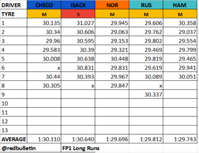 Ο Leclerc, με πιο επιθετικές ρυθμίσεις μονάδας ισχύος, κινήθηκε 0,22 δλ. ταχύτερα από τον Lando Norris, με τη McLaren, αλλά η ποινή του Μονεγάσκου σίγουρα τις δύο ομάδες να μάχονται αυτό το Σαββατοκύριακο για το φετινό Πρωτάθλημα Κατασκευαστών.