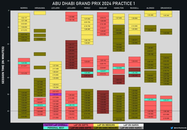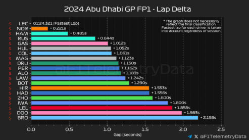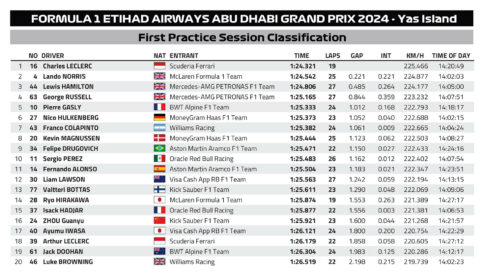 Το τελευταίο αγωνιστικό τριήμερο της φετινής σεζόν της Formula 1 ξεκίνησε με το FP1 του Grand Prix Άμπου Ντάμπι. Πρόκειται για έναν αγώνα πολλών αποχαιρετισμών, δεδομένων των αλλαγών στις οδηγικές συνθέσεις των ομάδων για το 2025. Ωστόσο, επειδή το FP1 διεξάγεται υπό το φως της ημέρας, ενώ ο αγώνας διεξάγεται στο σούρουπο, οι συνθήκες δεν ήταν αντιπροσωπευτικές.
