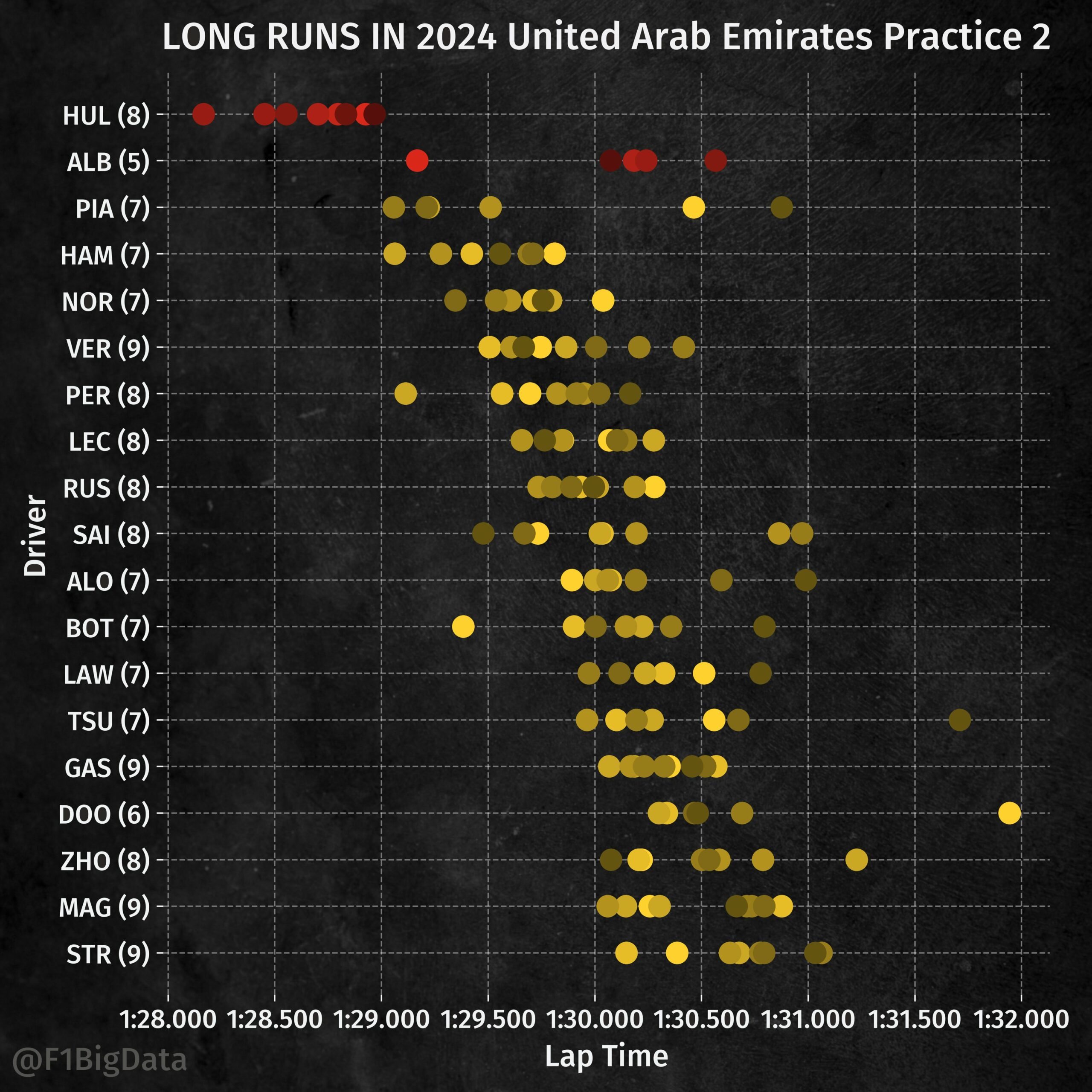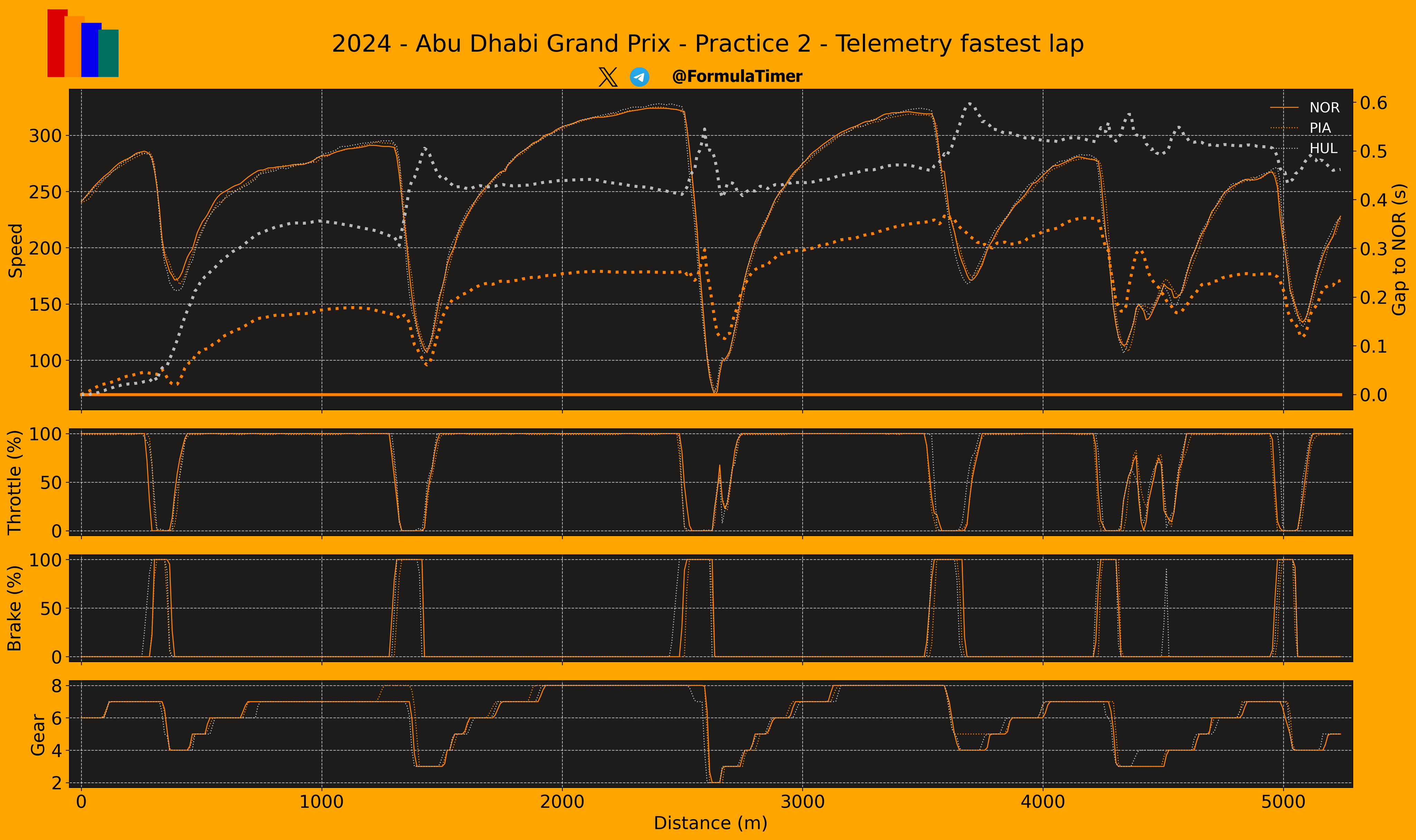 Ο Αμερικανός ανέφερε επίσης ότι η McLaren είναι καλύτερη στις γρήγορες στροφές, ενώ η Yas Marina έχει πολύ περισσότερες πιο αργές. Ωστόσο, ο ρυθμός της McLaren στις προσομοιώσεις αγώνα ήταν πολύ καλός, ιδίως στην αρχή του stint, αλλά οι χρόνοι ανέβηκαν αρκετά στη συνέχεια. O Norris ανέφερε ότι η McLaren έπρεπε να βρει καλύτερο συμβιβασμό μεταξύ ταχύτητας και καταπόνησης ελαστικών στα μεγάλα stint, ενώ ανέφερε ότι η McLaren είχε πιο επιθετικές ρυθμίσεις μονάδας ισχύος.