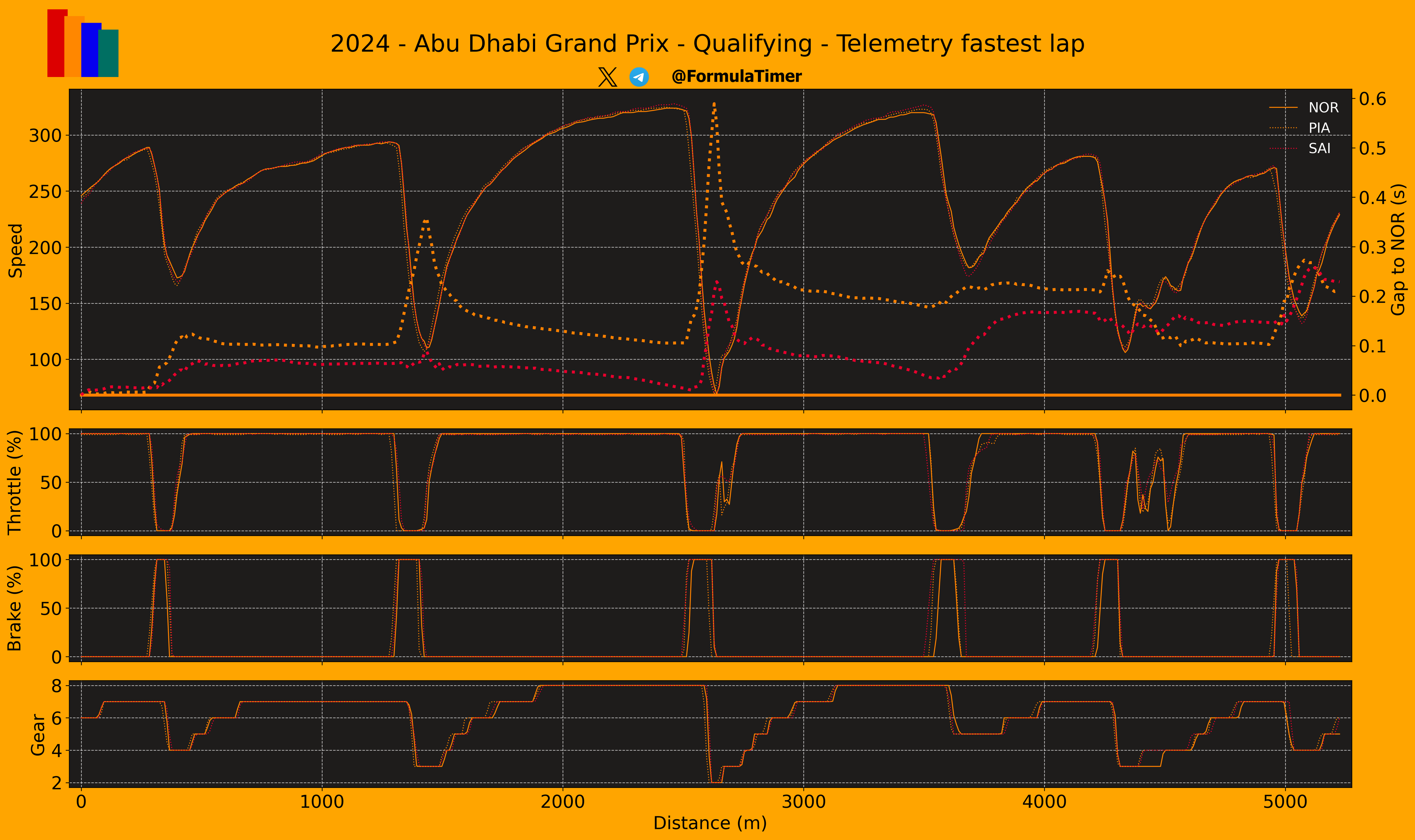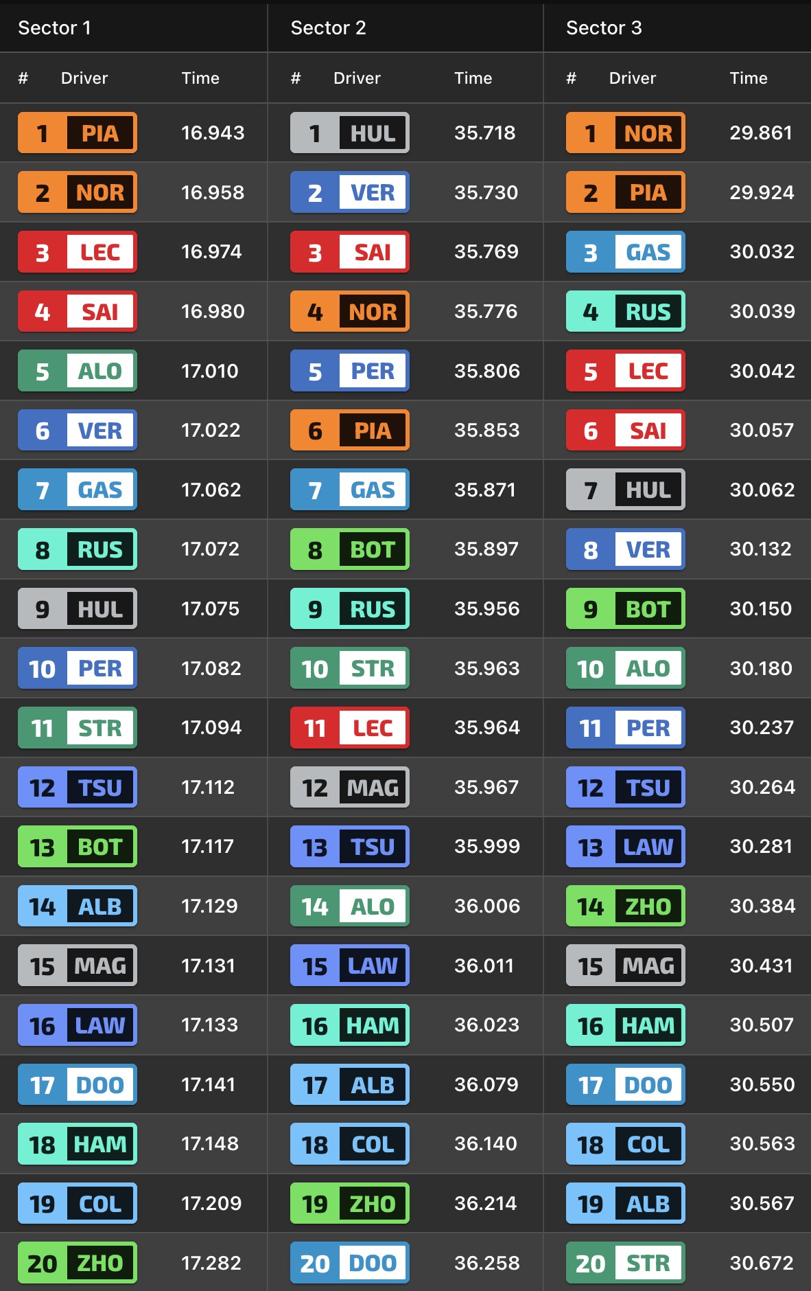 Ο Norris ανέφερε στον ασύρματο ότι θα μπορούσε να έχει κινηθεί ακόμα ταχύτερα. Ο Piastri δήλωσε ότι του πήρε λίγο χρόνο να προσαρμοστεί στις συνθήκες, με πιο έντονους ανέμους να πνέουν στην πίστα. Στην 3η θέση θα εκκινήσει αύριο ο Carlos Sainz με τη Ferrari, ο οποίος βρέθηκε μόλις 0,02 δλ. πίσω από τον Piastri. Έχοντας εισέλθει στην τελευταία στροφή με περισσότερα χλμ., ο Ισπανός έχασε χρόνο εκεί, για αυτό και ο Piastri ήταν ευχαριστημένος με τη 2η θέση.